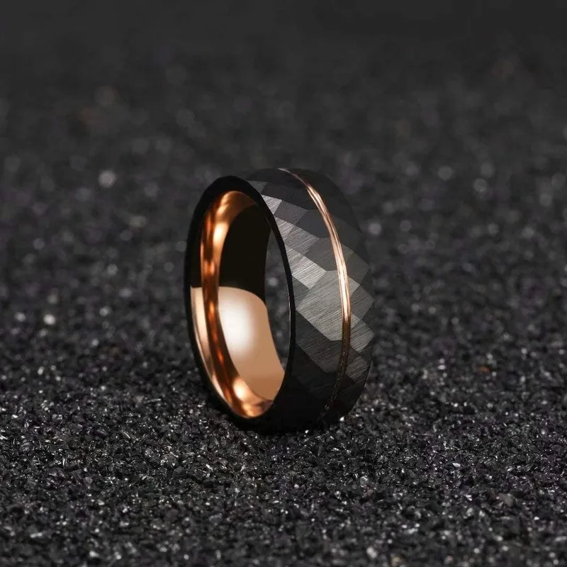 Número do modelo: Black Tungsten Rings for Men Women Thin Rose Gold Groove Hammered Wedd