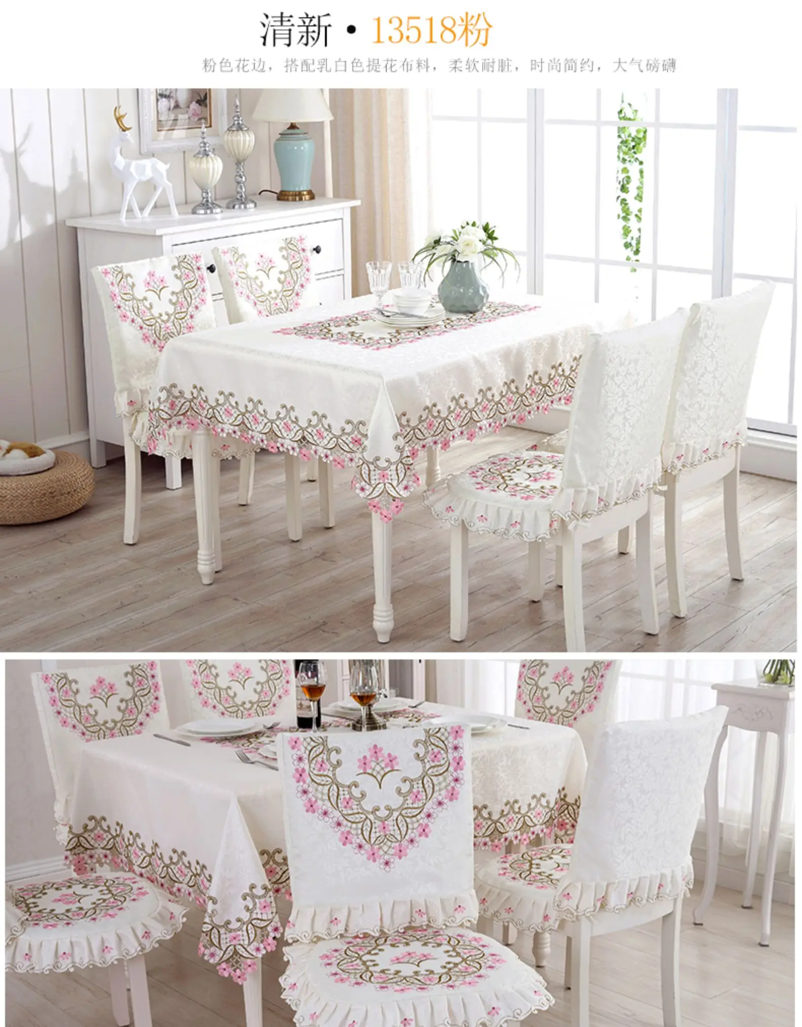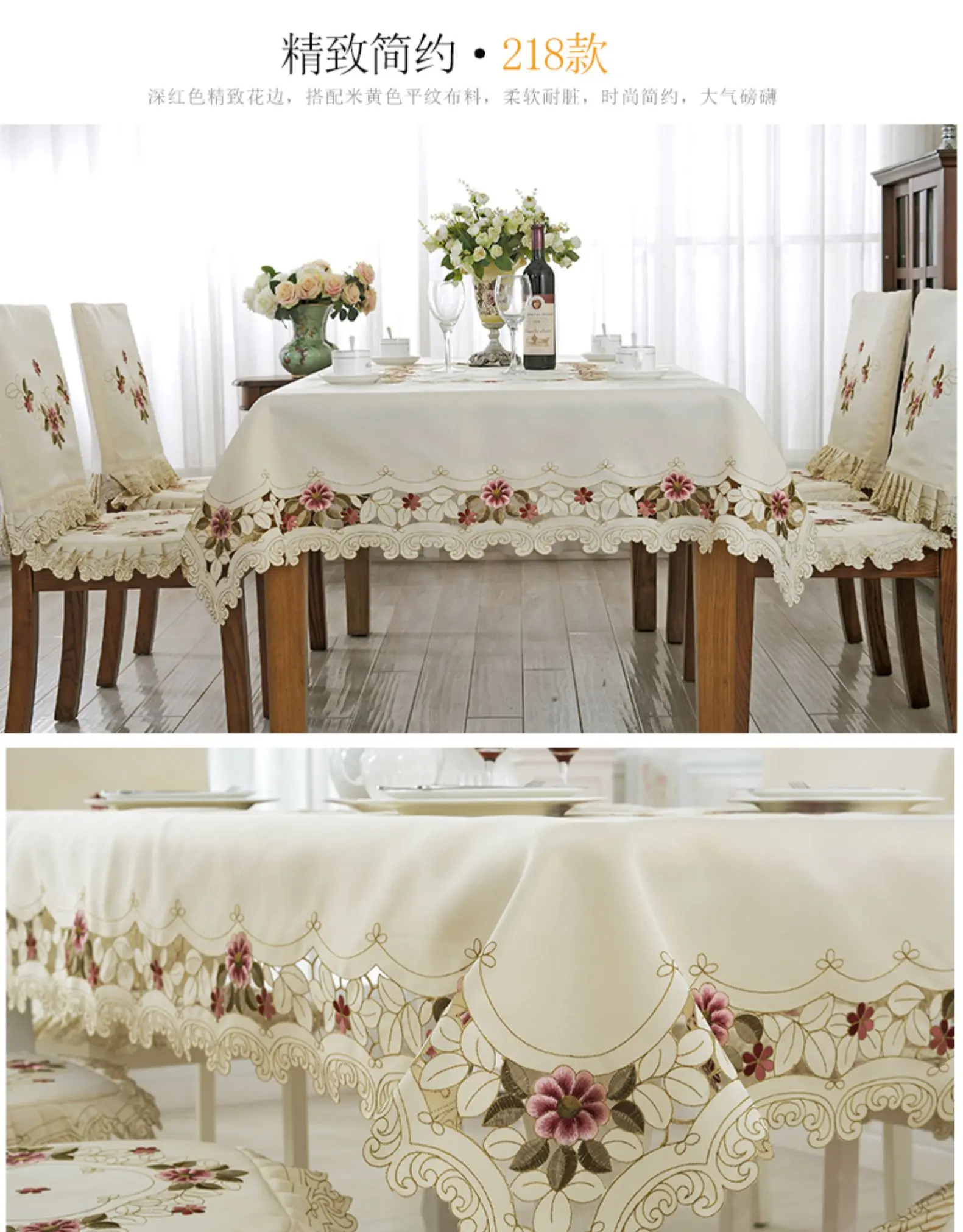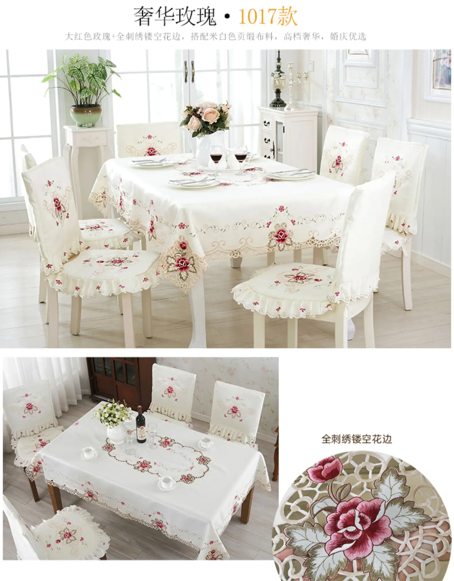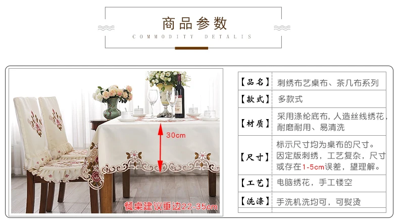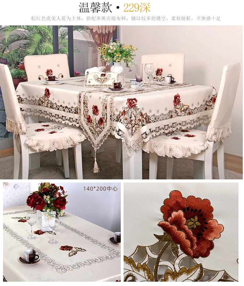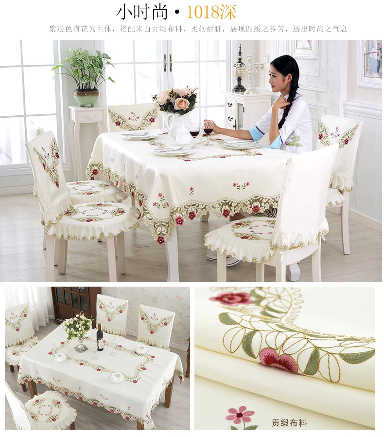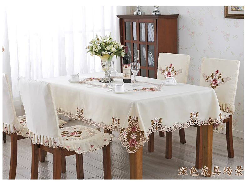 Toalha de mesa capa de renda jardim europeu elegante bordado toalha de mesa flor peônia cadeira capa de poeira de casamento