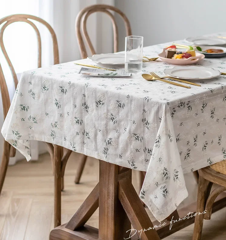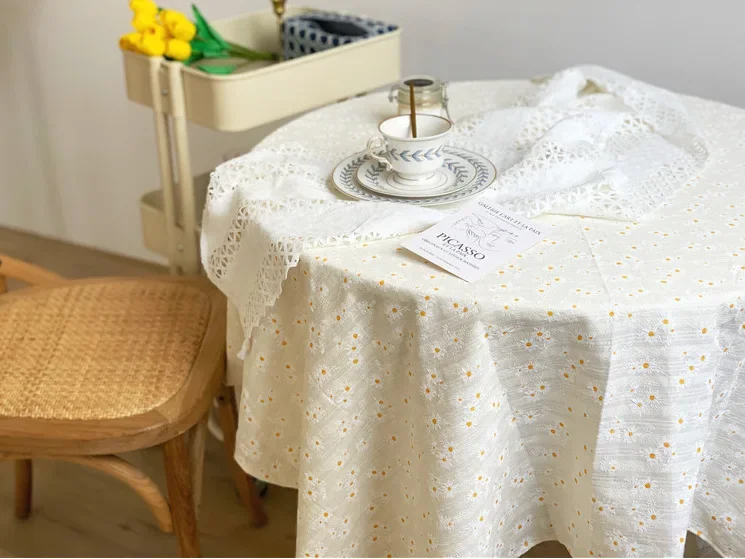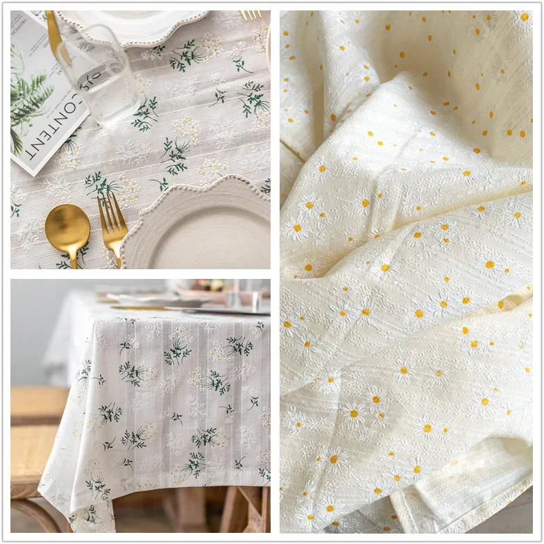 Toalha de mesa de algodão com borlas lilás, capa de mesa retangular para cozinha, casamento, jantar, uso diário, estilo coreano, decoração de mesa de chá com margaridas