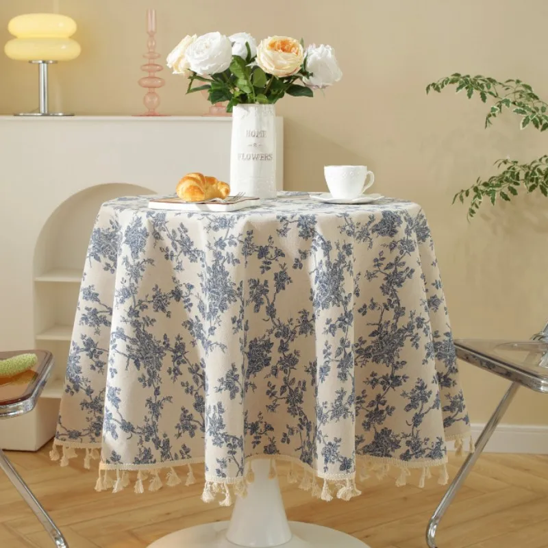 Toalha de mesa floral de linho e algodão com borla retrô nappe de mesa capa redonda para mesa de jantar pano de mesa de chá Tafelkleed