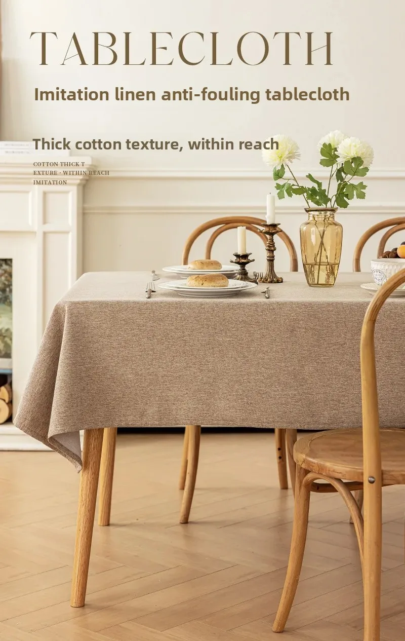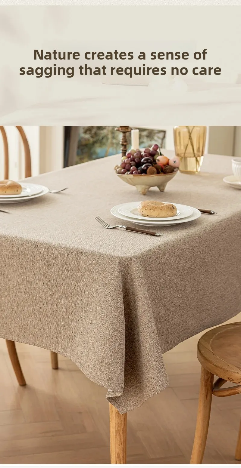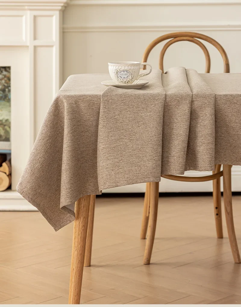 Toalha de mesa de algodão e linho, à prova d'água, à prova de poeira, resistente a óleo, cor sólida, retangular, café, mesa de jantar