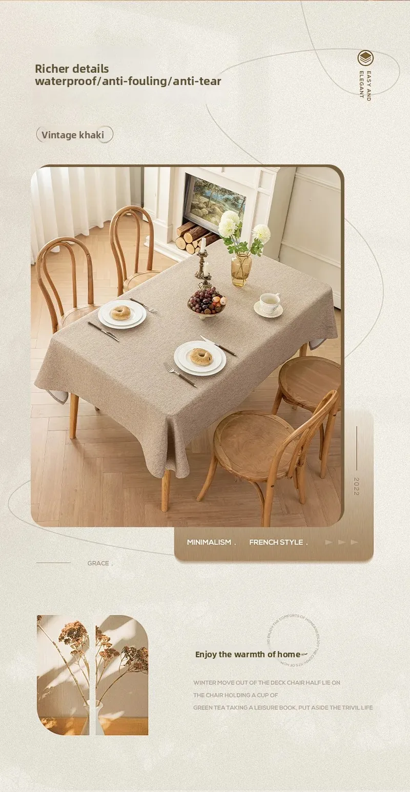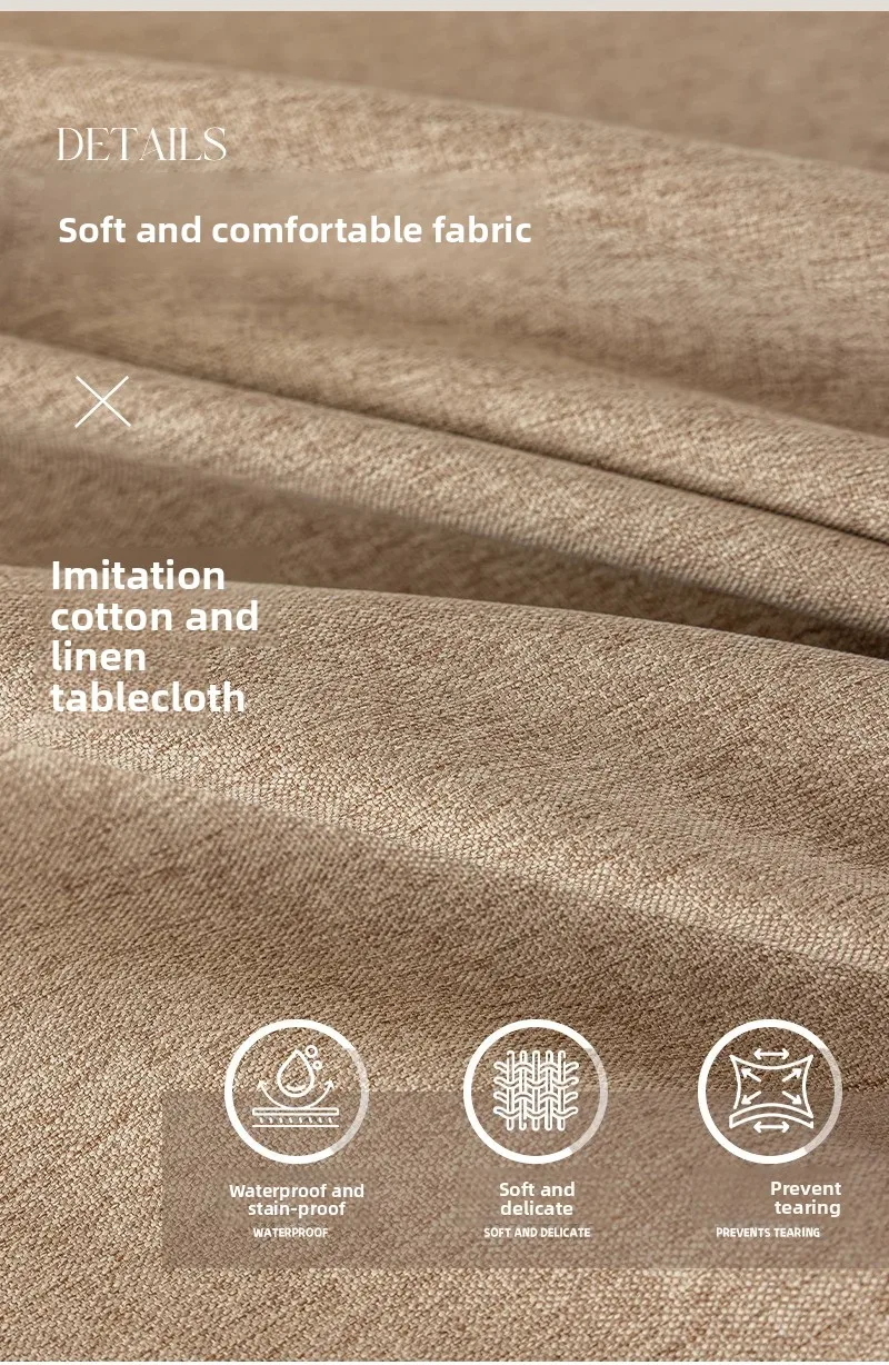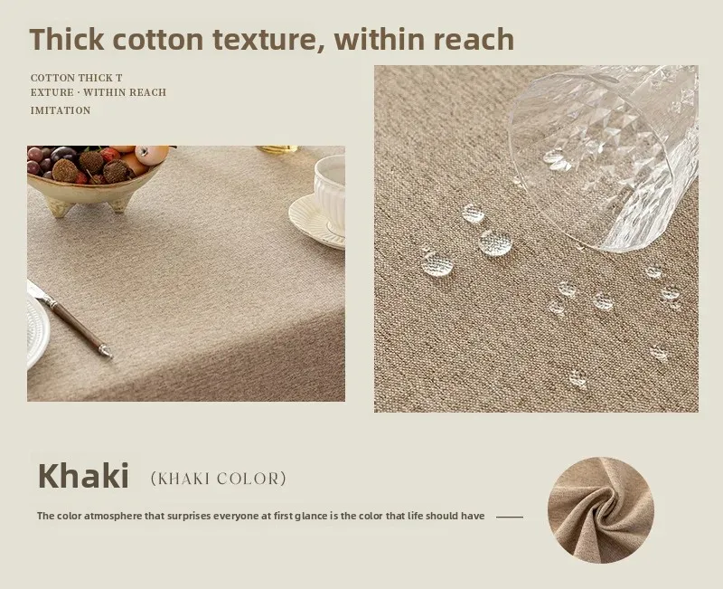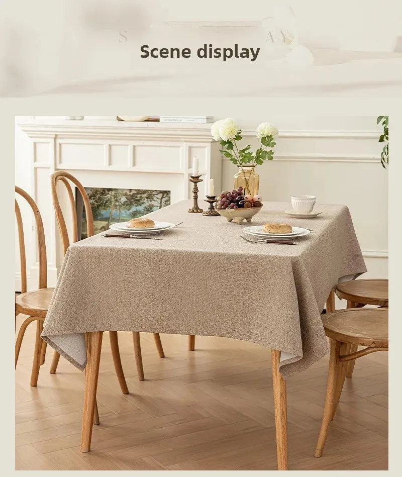 Toalha de mesa de algodão e linho, à prova d'água, à prova de poeira, resistente a óleo, cor sólida, retangular, café, mesa de jantar