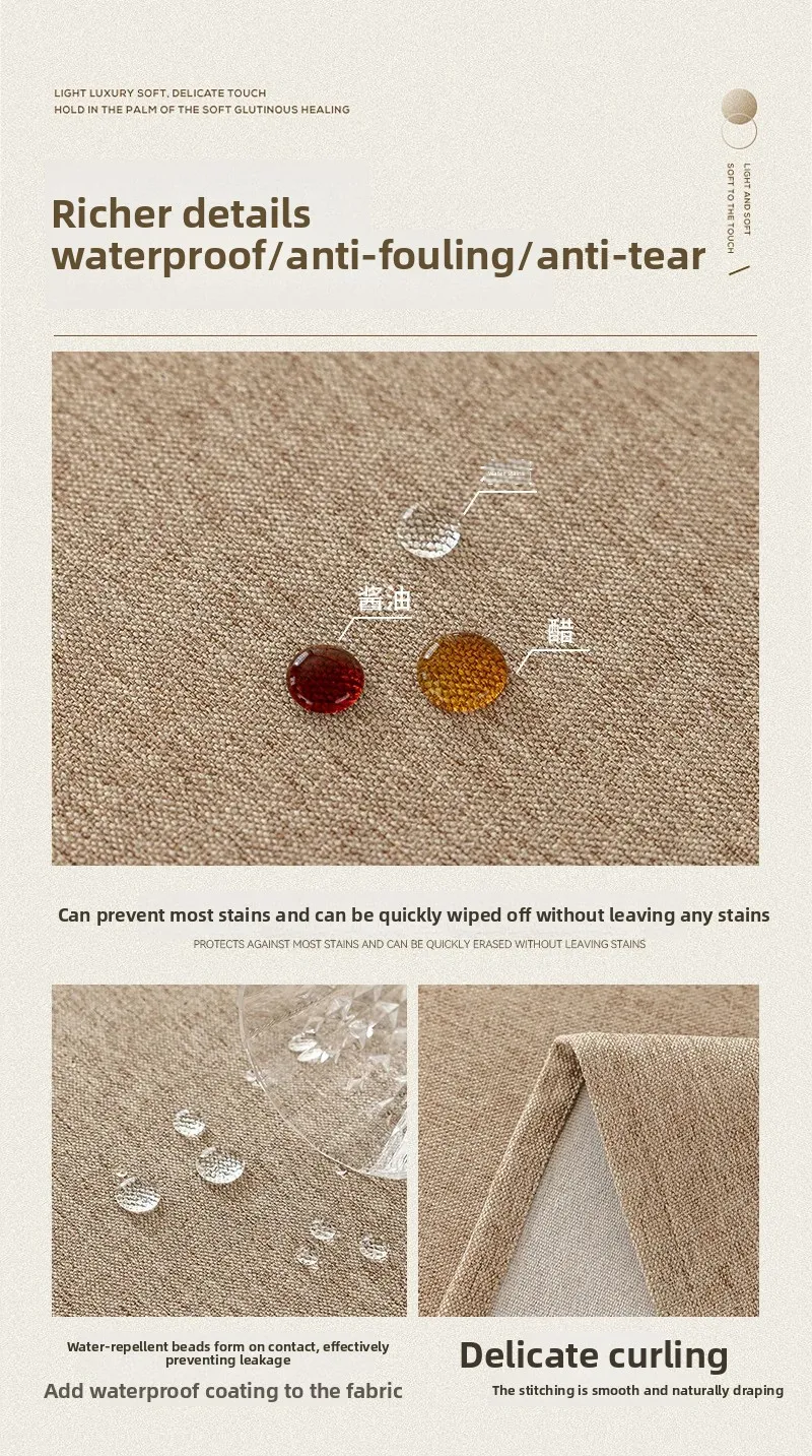 A largura máxima da porta da toalha de mesa de três provas é de 3 metros/gram + peso 200g/à prova d'água/pode ser feita até 2,9 metros redondos/não contém cores existentes, verde sálvia, cáqui, cinza claro, bege e cores podem ser adicionadas mais tarde.