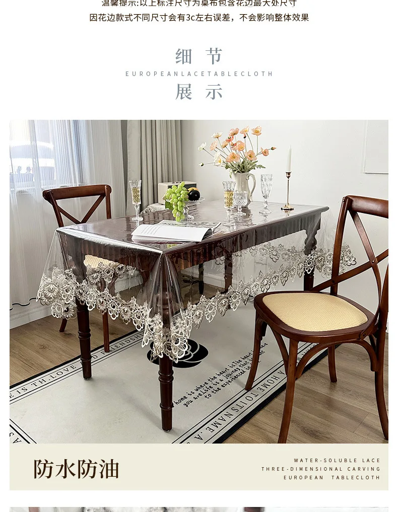 Toalha de mesa de jantar transparente em pvc, à prova d'água, lavável, de plástico, retangular, redonda, vidro macio, tapete de mesa de chá