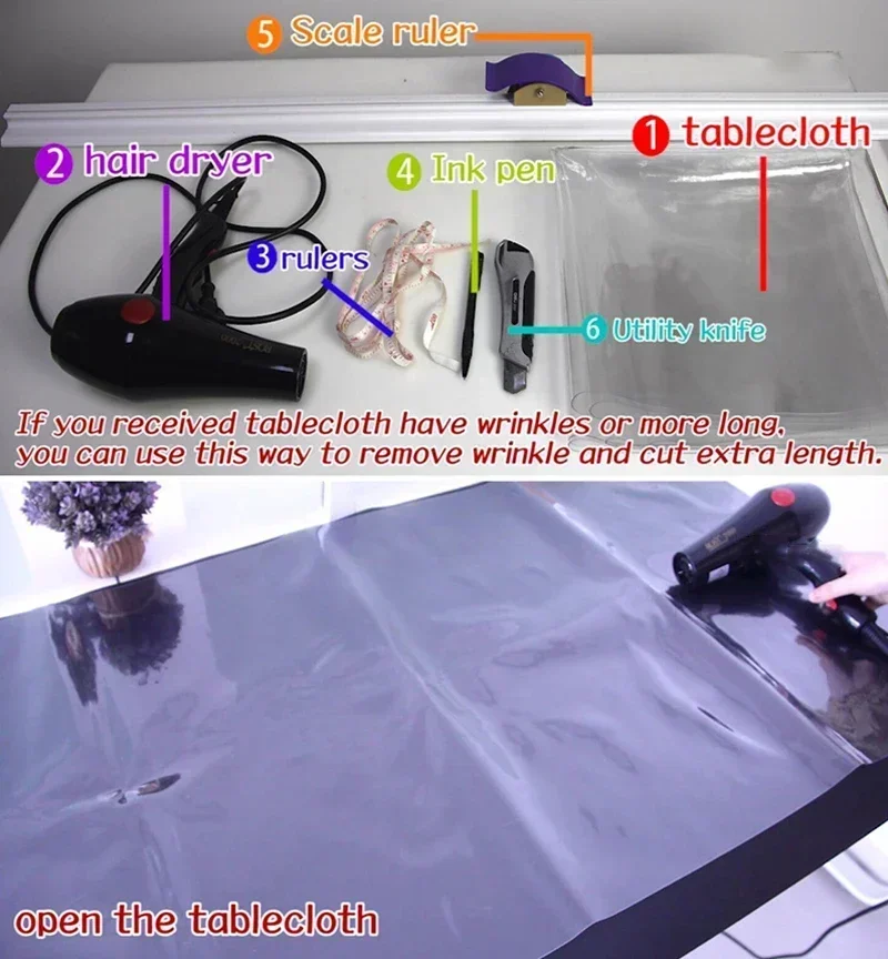 Feito deMacio e durávelPlástico PVC vinil com prensado a quente em um rolo.Esta clara tampa de tabela PVC é durável, à prova d'água, resistente a óleo.