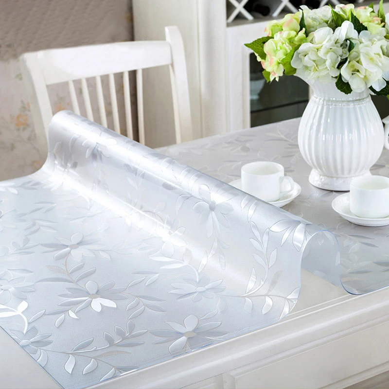 Toalha de mesa de vidro macio pvc, transparente/fosco, à prova de óleo, à prova d'água, casa, cozinha, mesa de jantar, capa para mesa, aproximadamente 1.0mm