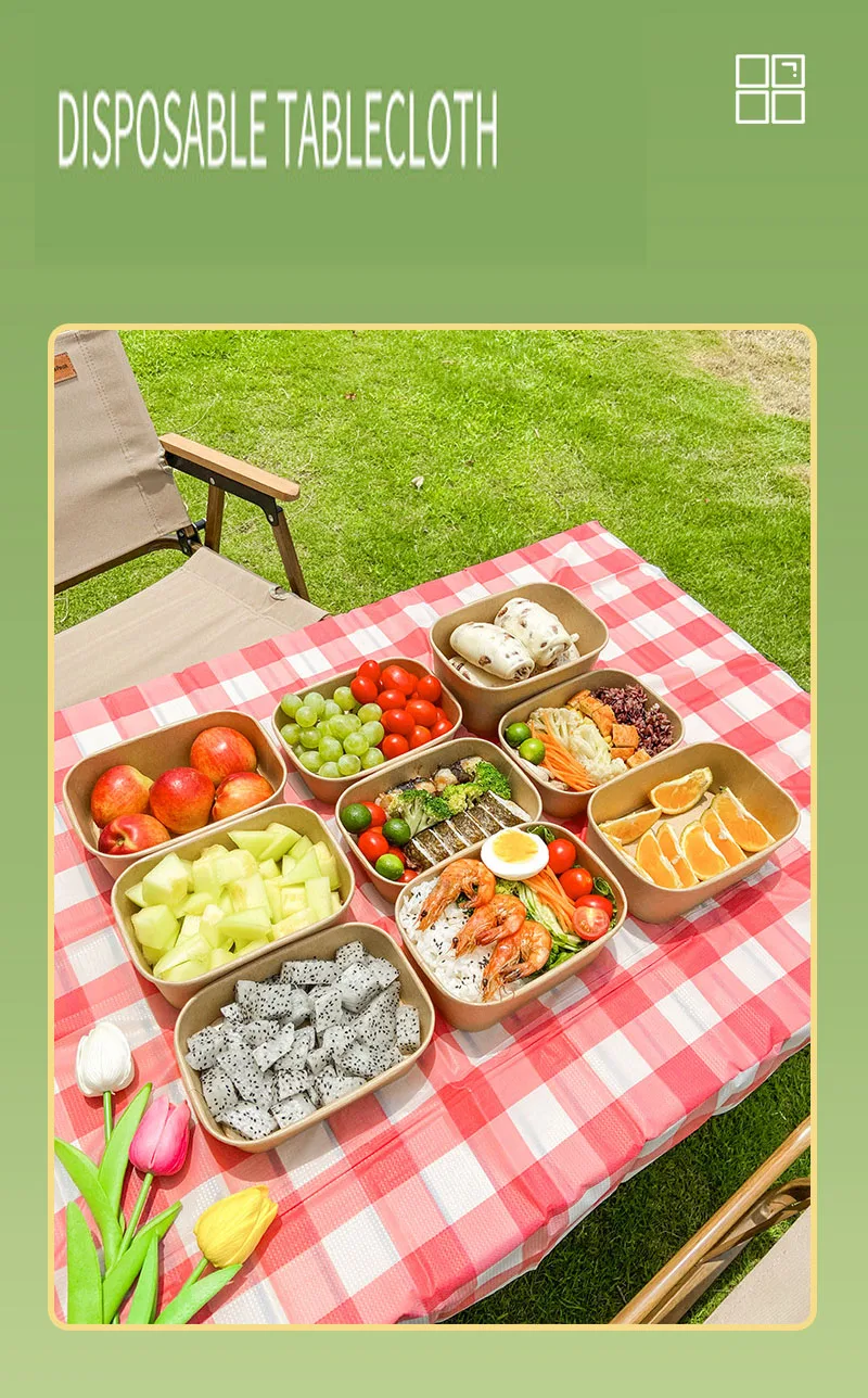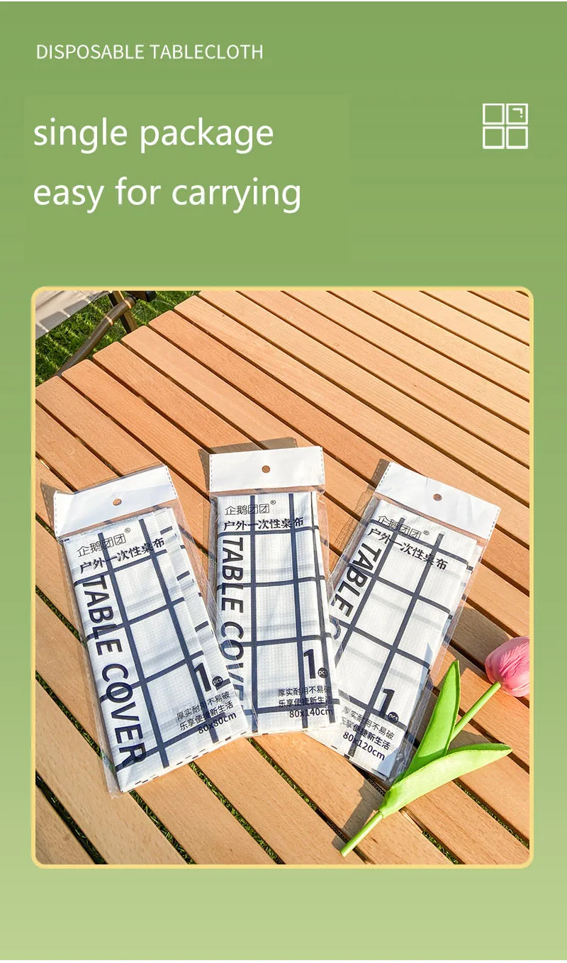 Toalha de mesa descartável de plástico, 80x120cm, à prova d'água, à prova de óleo, festa ao ar livre, churrasco, xadrez, listra, padrão de onda, tapetes de piquenique