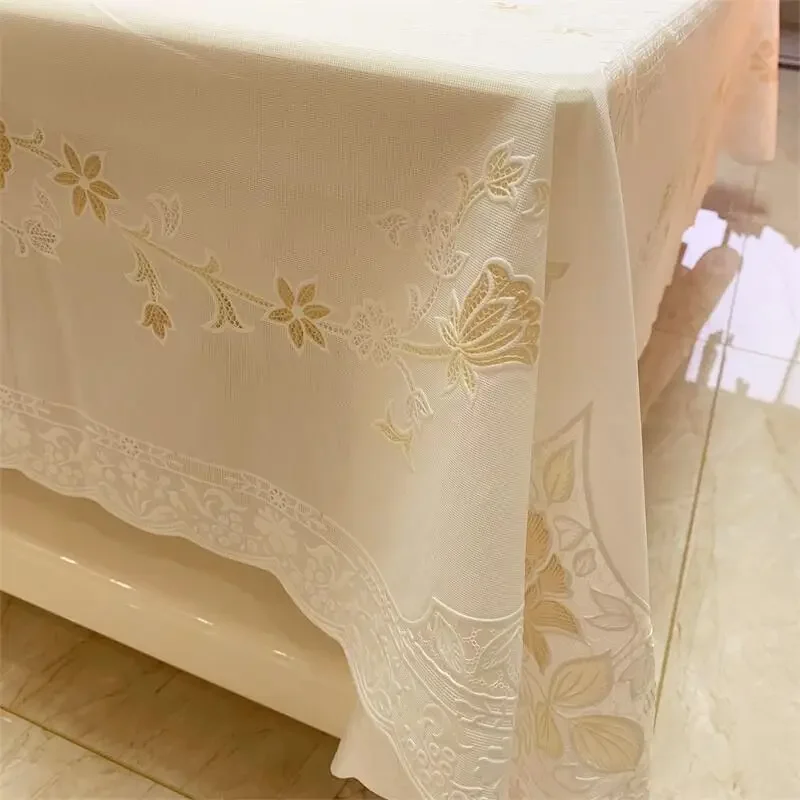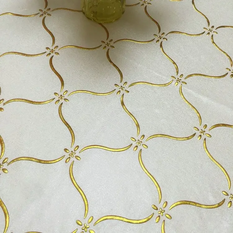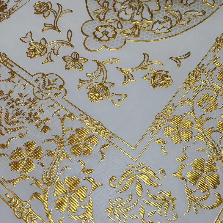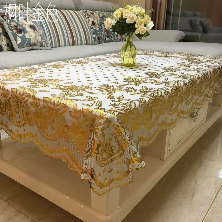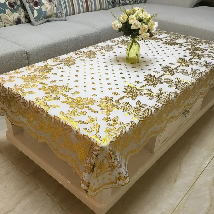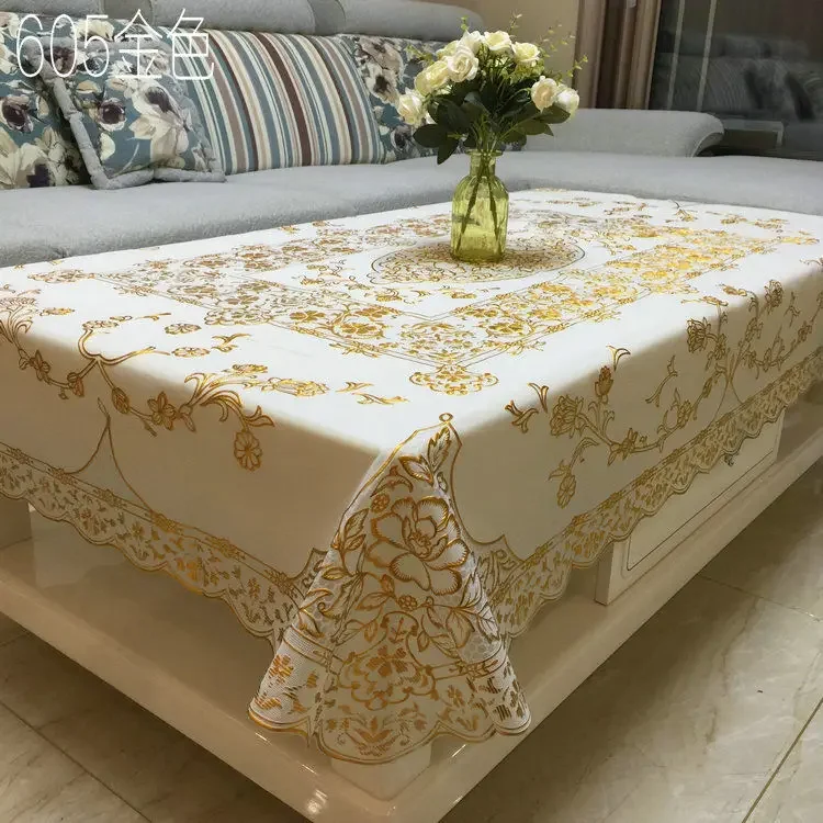Toalha de mesa dourada de pvc, tapete de mesa de centro à prova d'água, resistente a óleo de queimaduras, estilo flores douradas, toalha de mesa de plástico minimalista