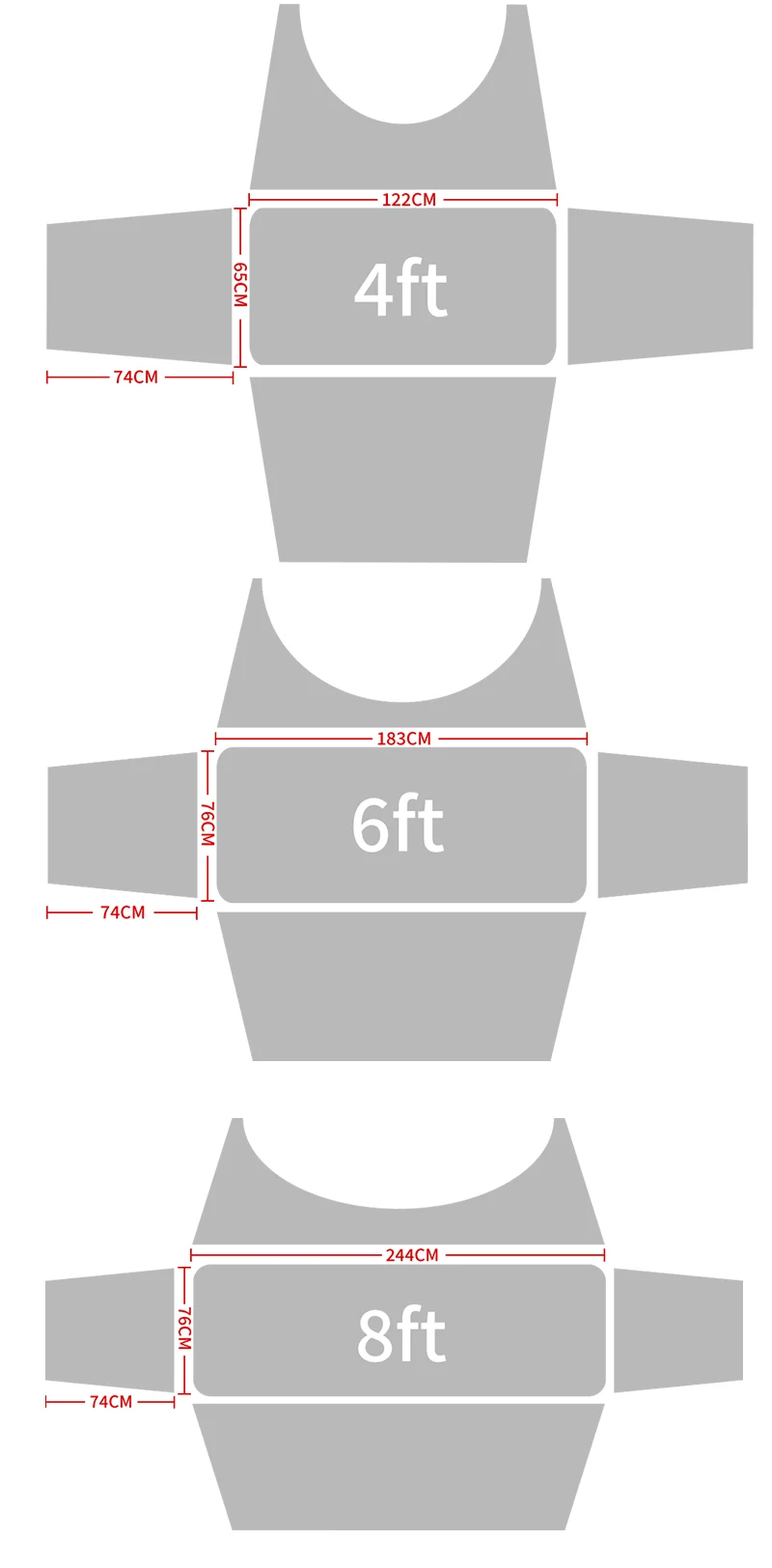 Tamanho: 4ft 6ft 8ft