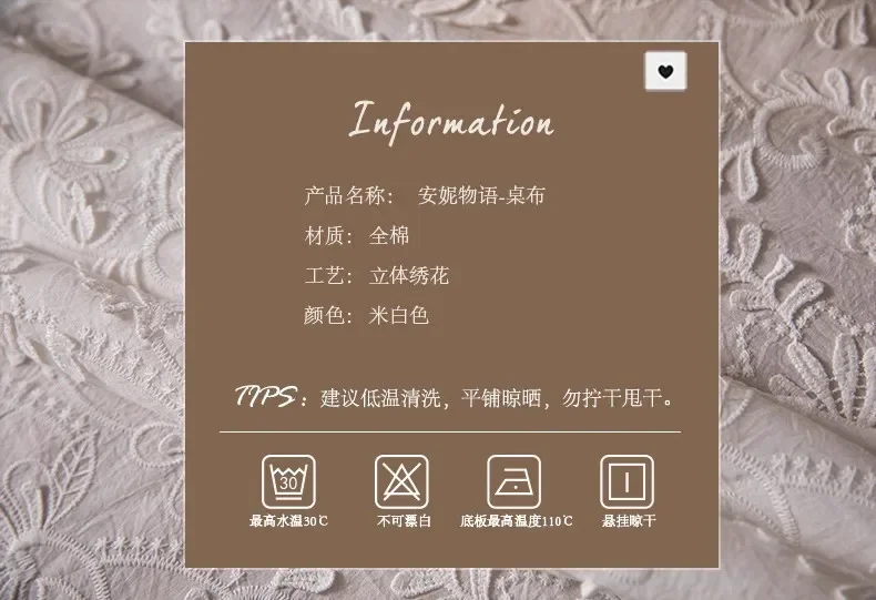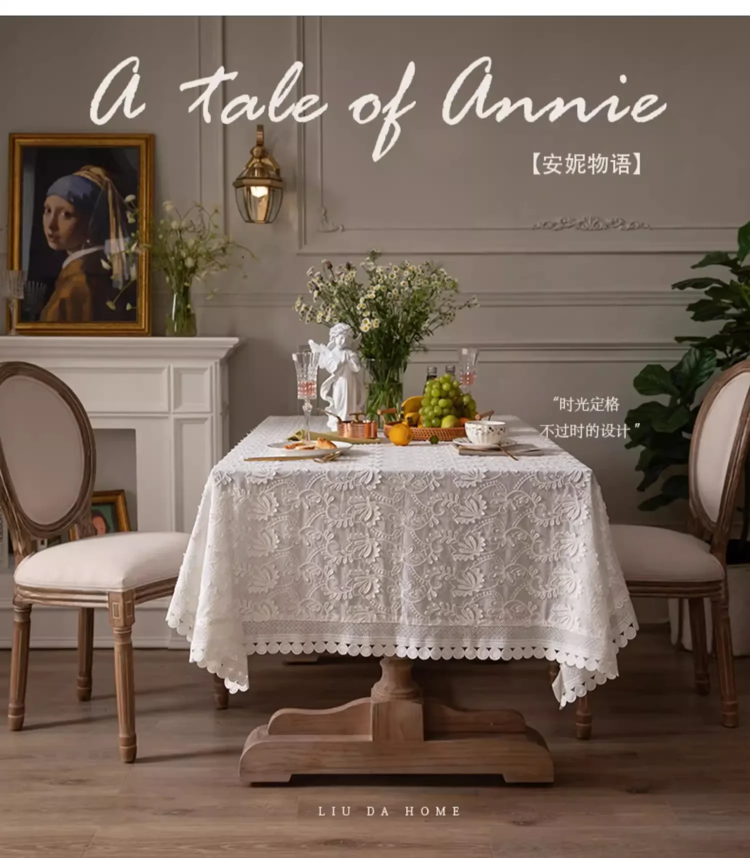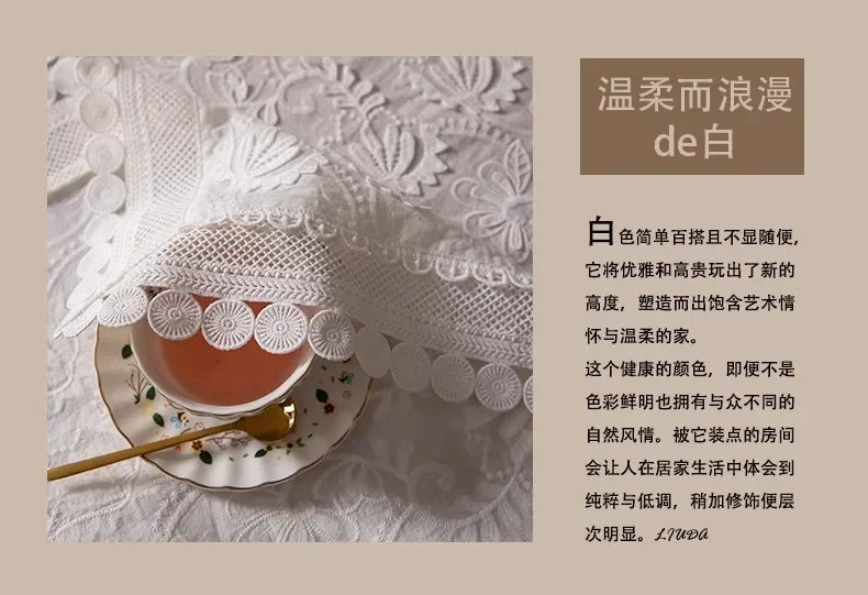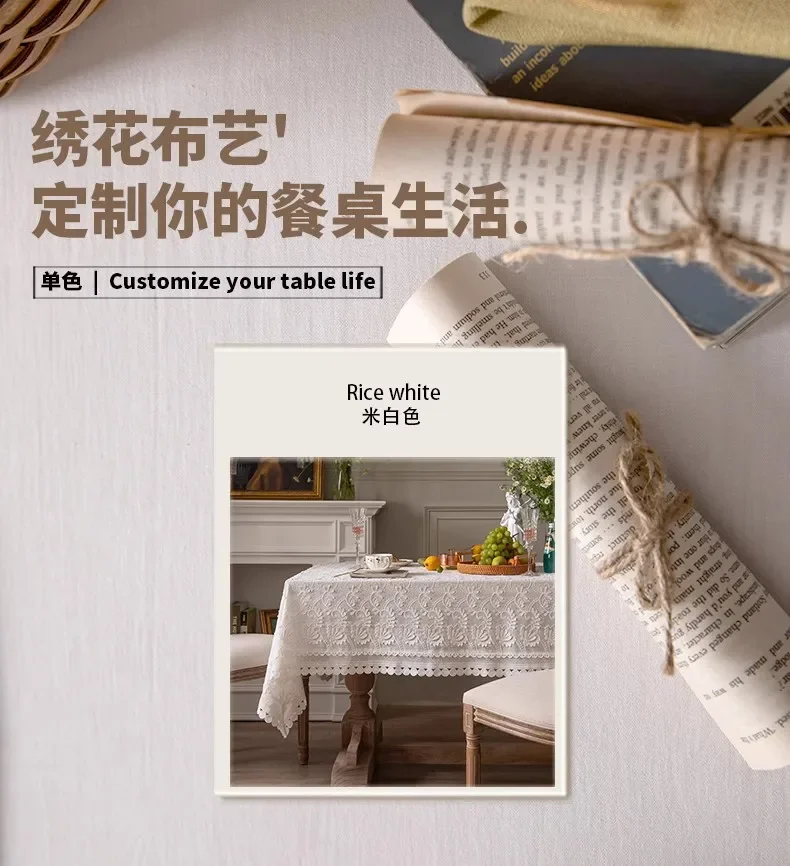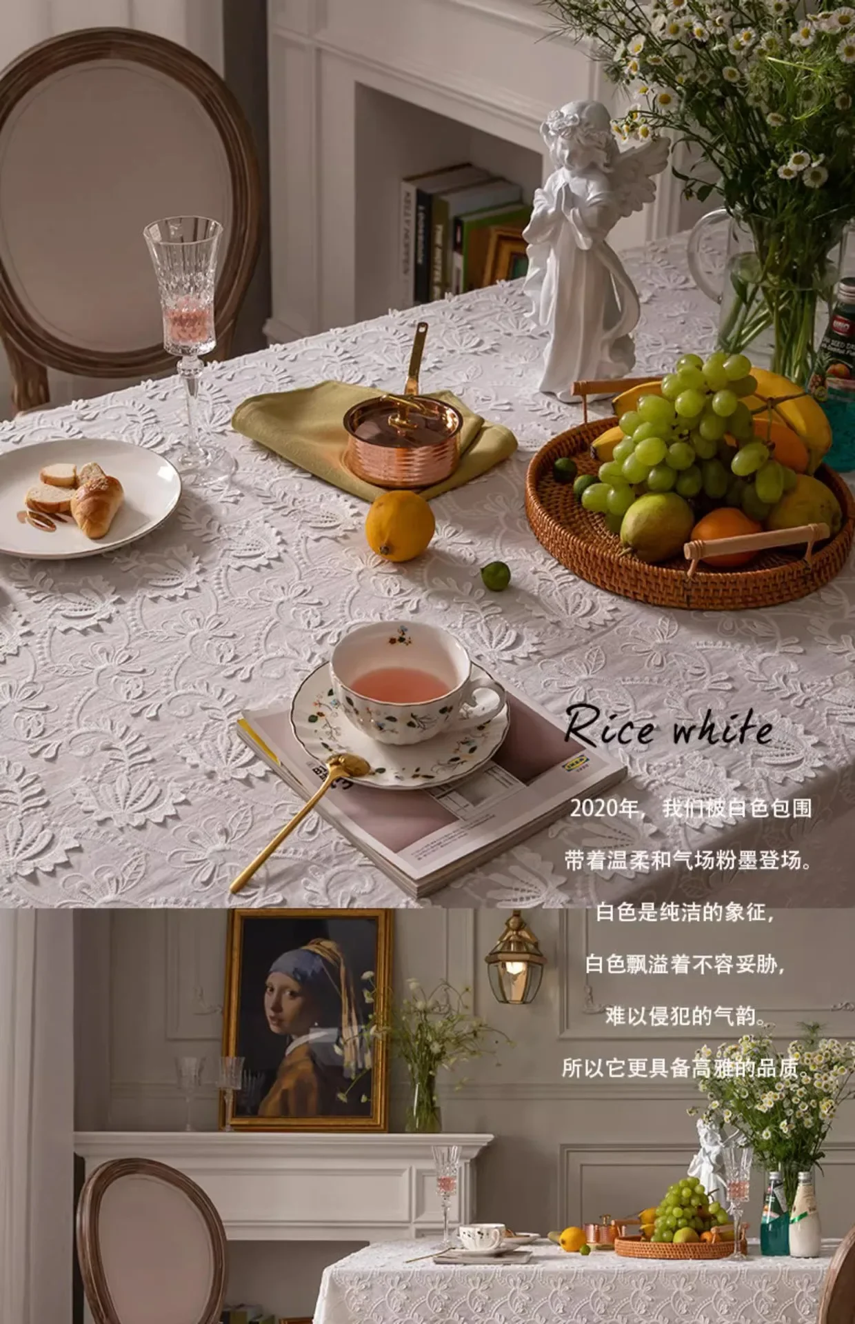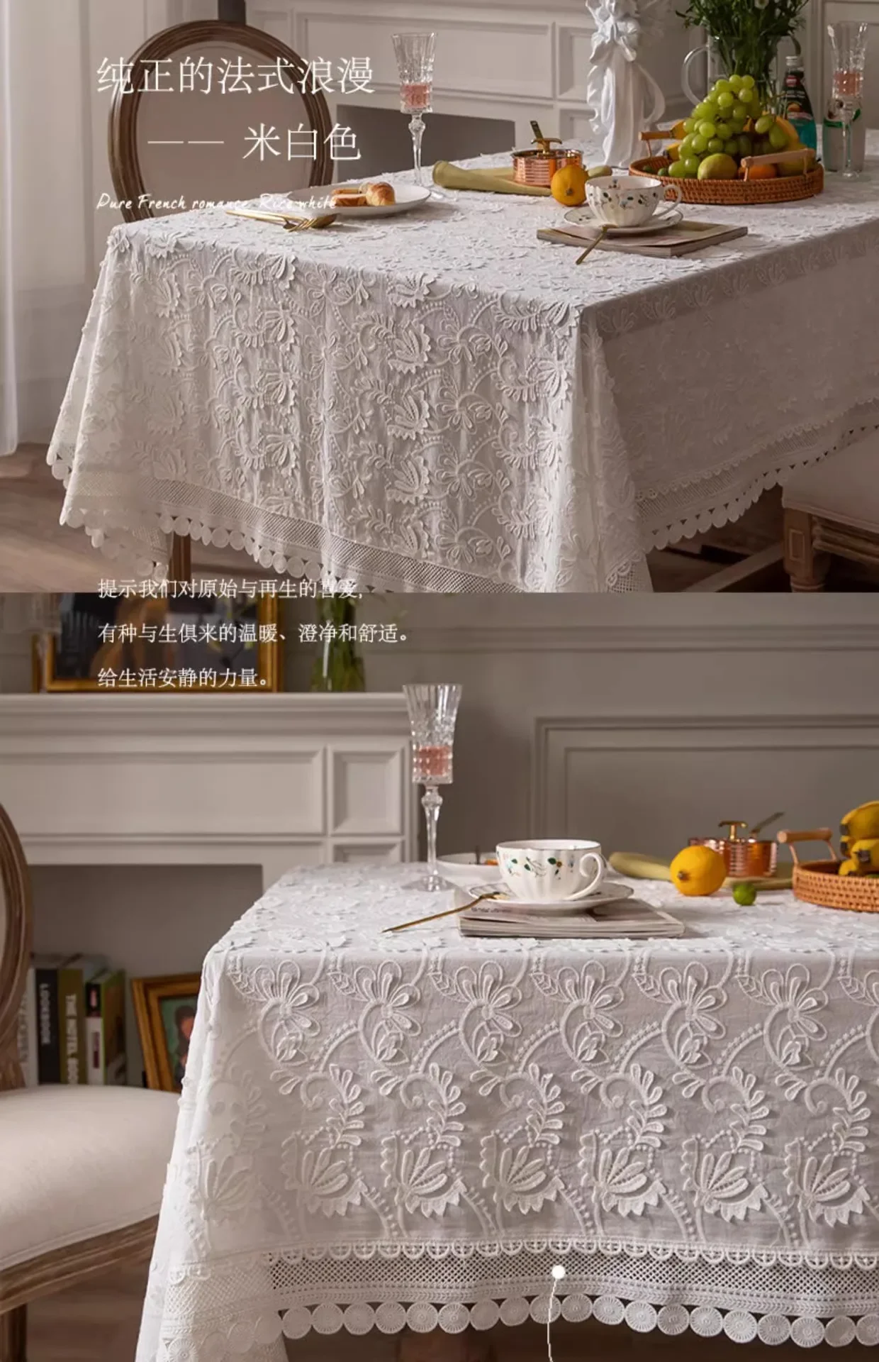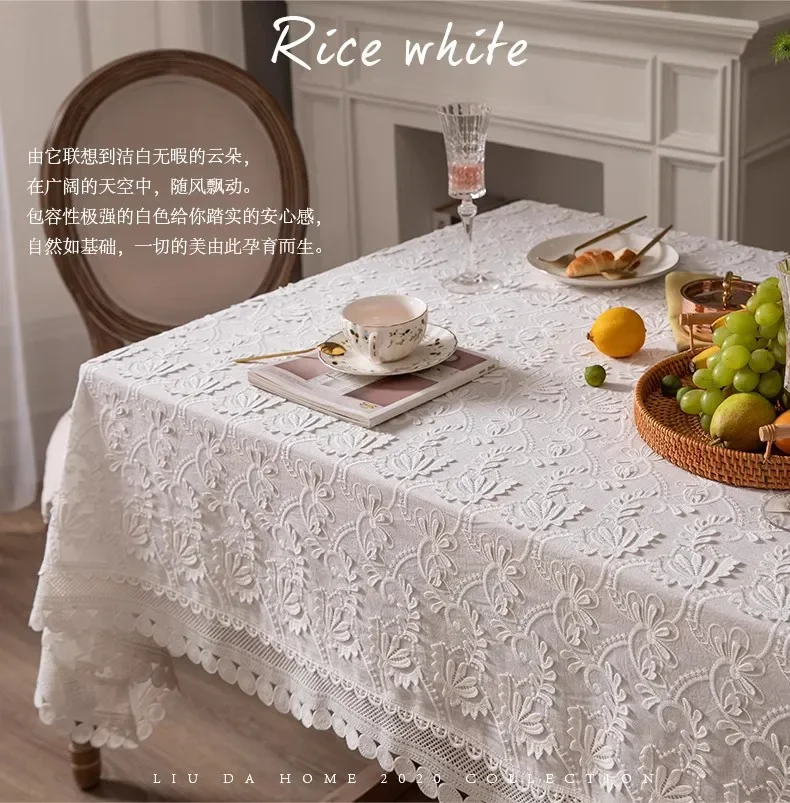 Toalha de mesa luxuosa de renda bordada branca para festa de casamento, sala de estar, quarto, decoração de mesa americana