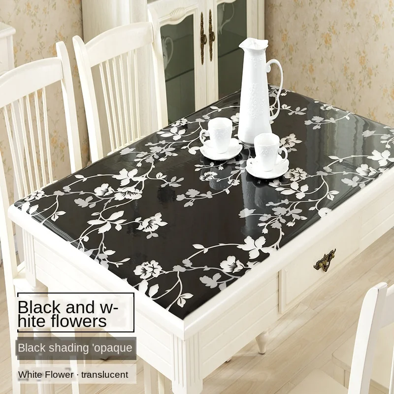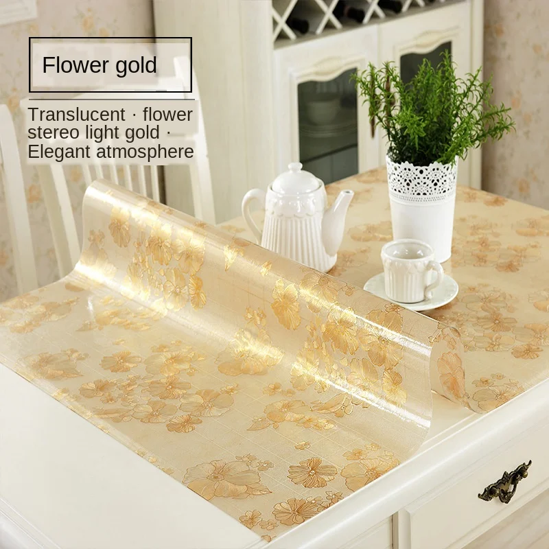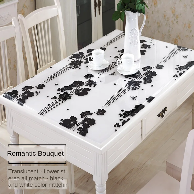 Transparente PVC Toalha De Mesa Toalha De Mesa Têxtil Doméstico Toalha De Mesa Crisântemo Padrão Capa Óleo Vidro Pano Macio Toalha De Mesa