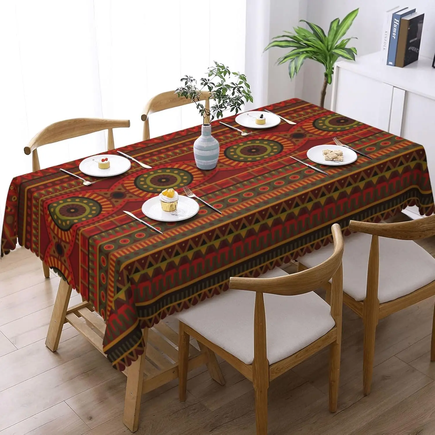 Toalha de mesa retangular estilo étnico tribal africano, à prova d'água, decoração de mesa, reutilizável, cozinha, jantar, decoração de festa de feriado