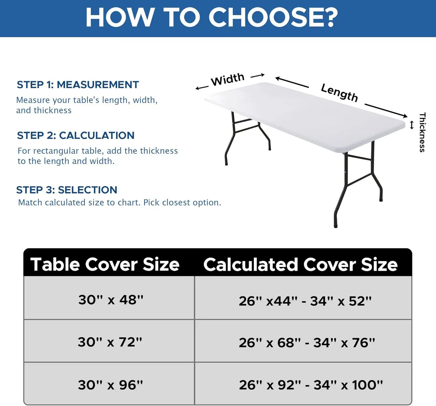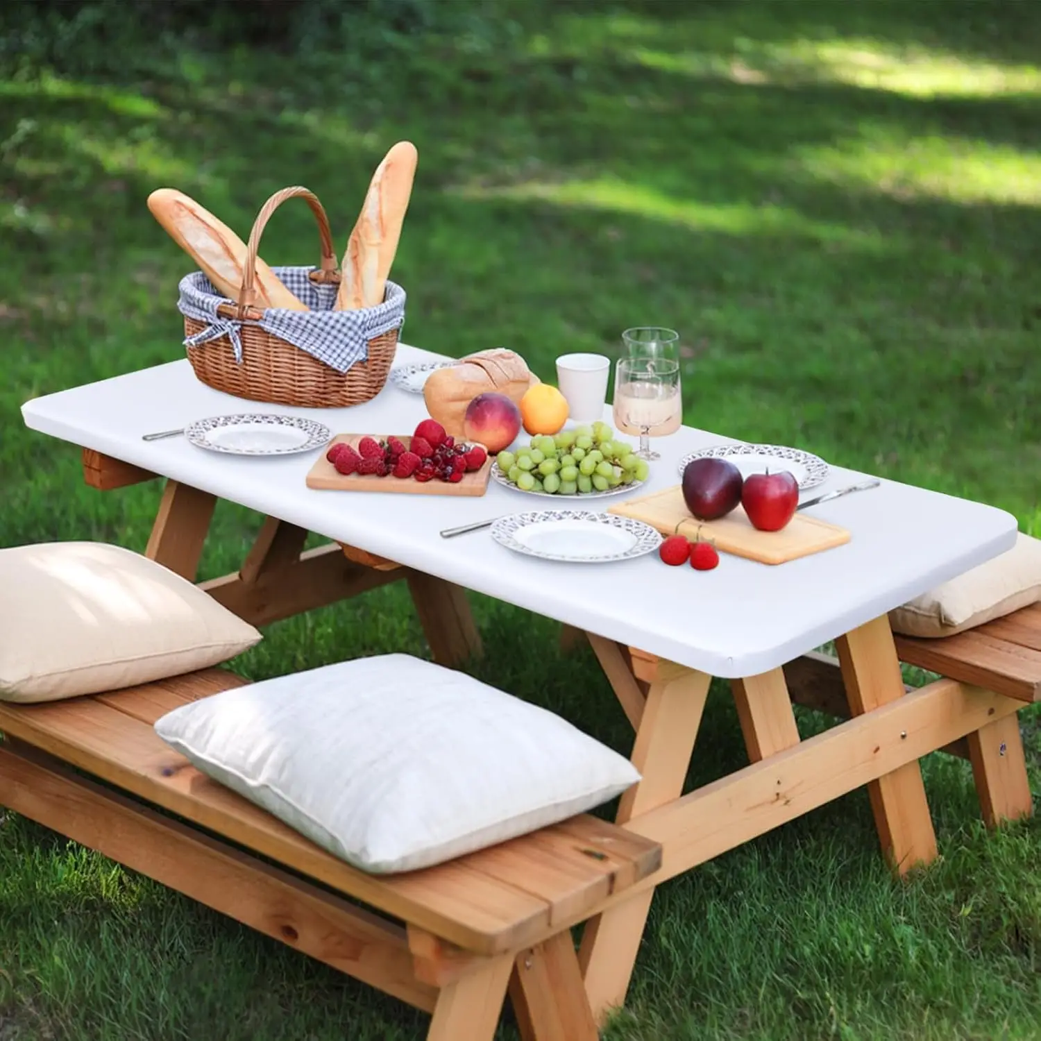 Toalhas de mesa com ajuste elástico à prova d'água para mesas de 8 pés, capa de mesa de poliéster para camping, interno e externo (branco, 30 "x 96")