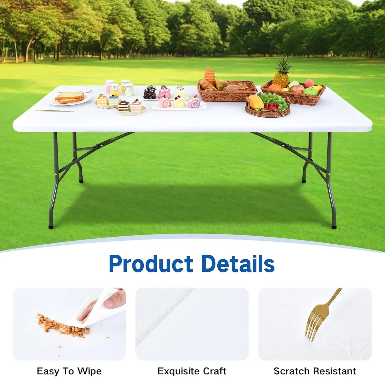•[Bordas elásticas e à prova de vento] O design das bordas elásticas garante que a cobertura da mesa fique firmemente no lugar e permaneça plana, mesmo quando usada em acampamentos e em condições de vento