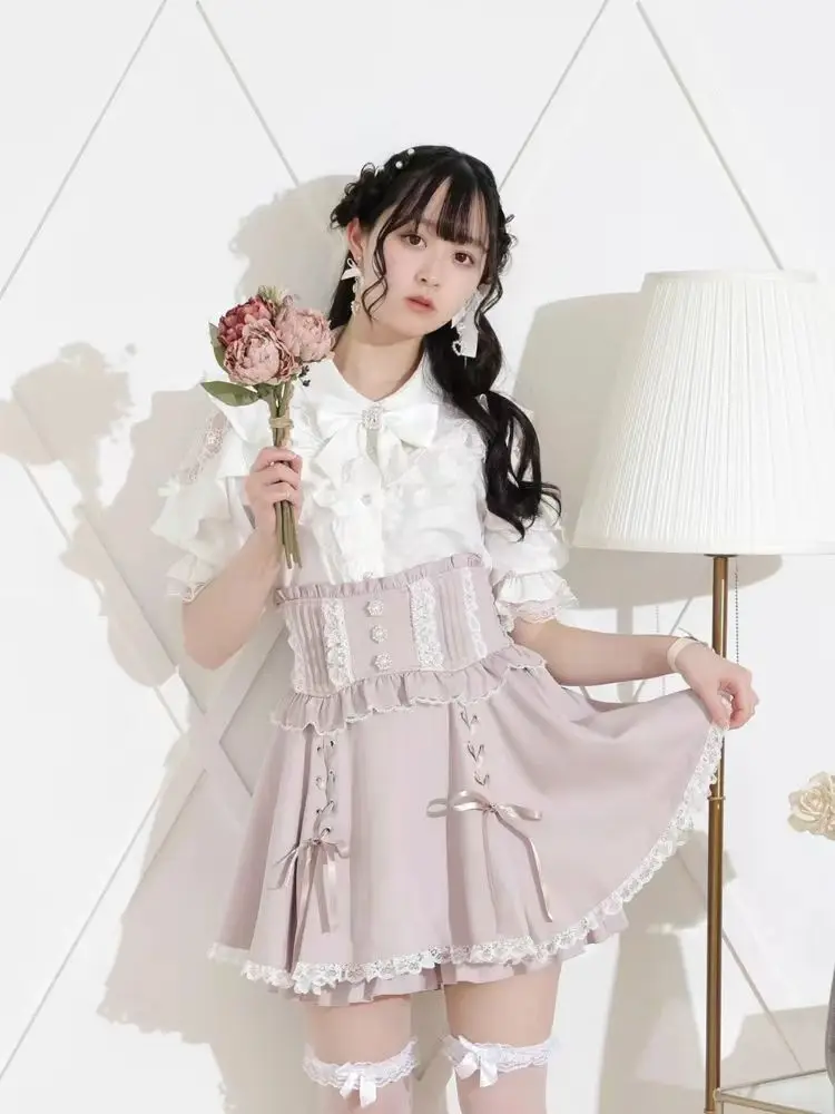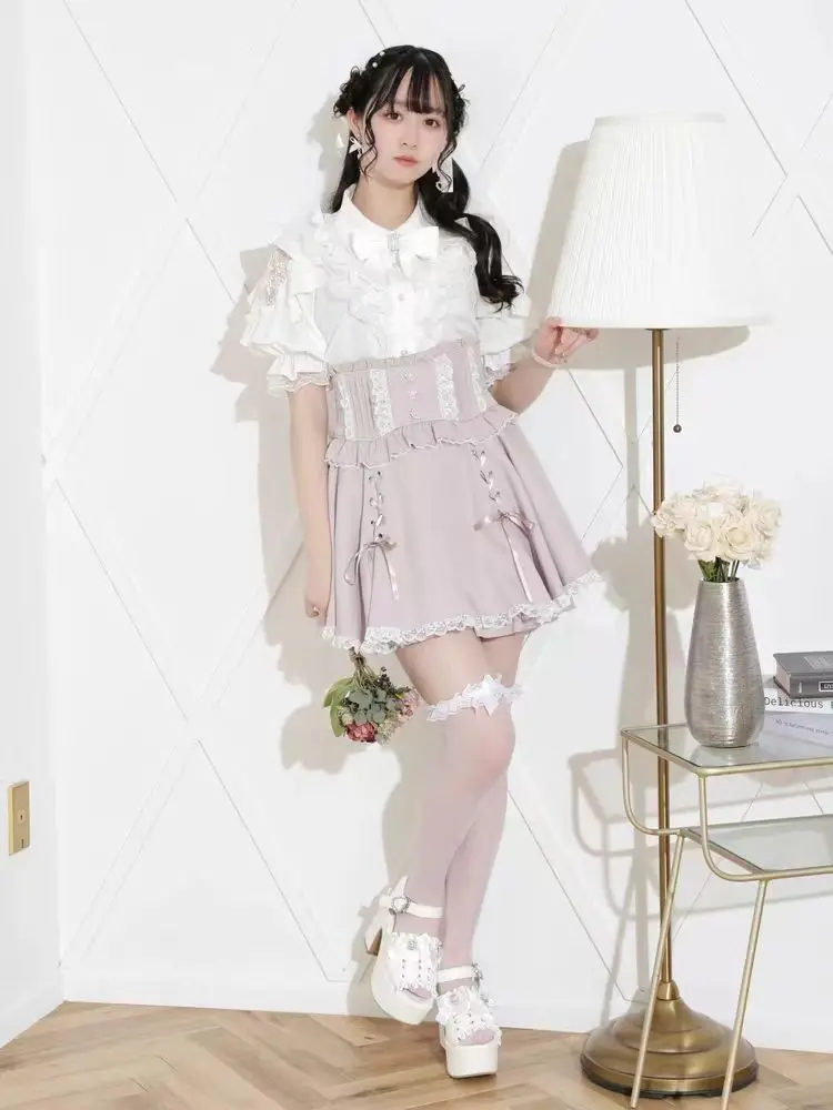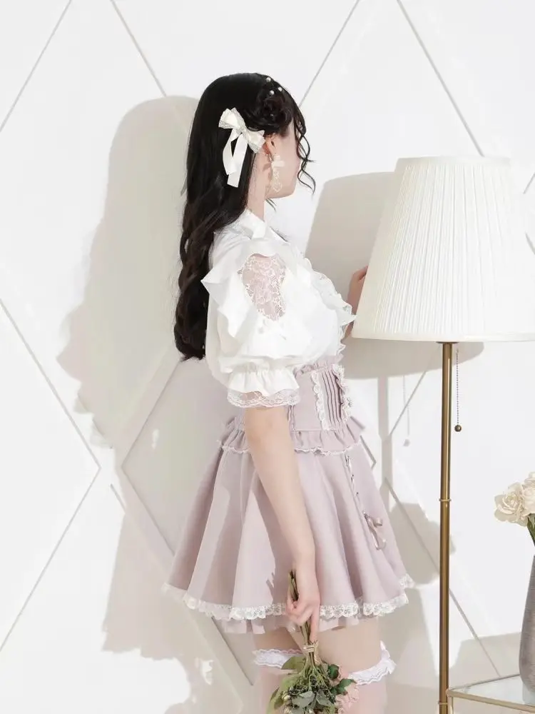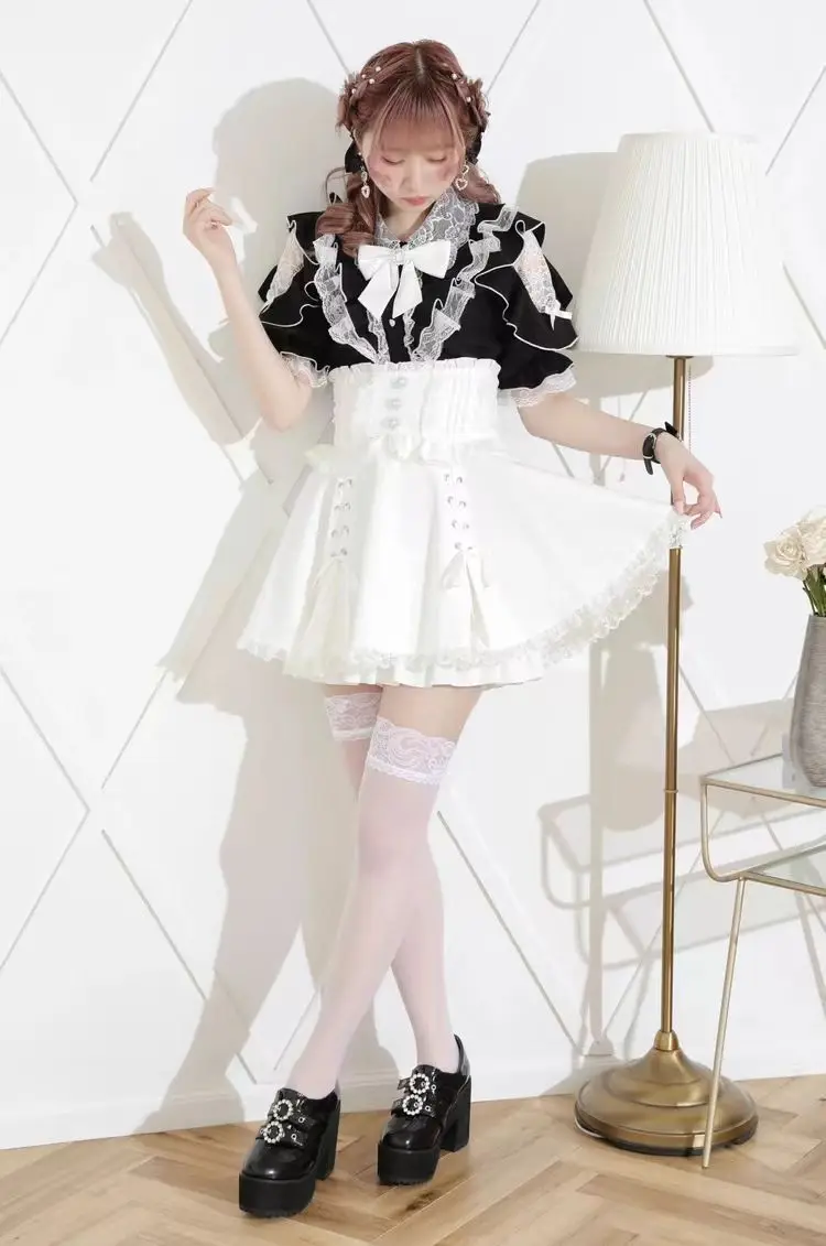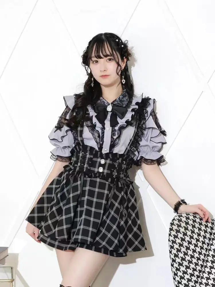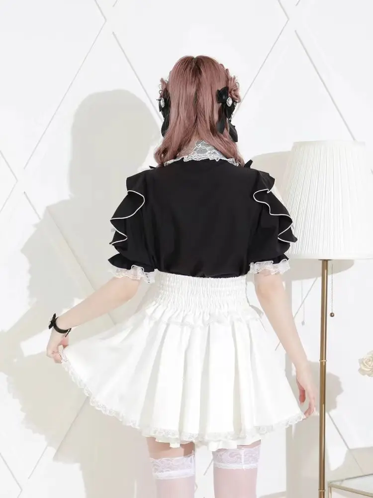 Top com laço e babados inspirado noemi – Blusa japonesa escura feminina com ombros de fora, camisa de manga sino com acabamento em renda para Yami Kawaii e Lolita