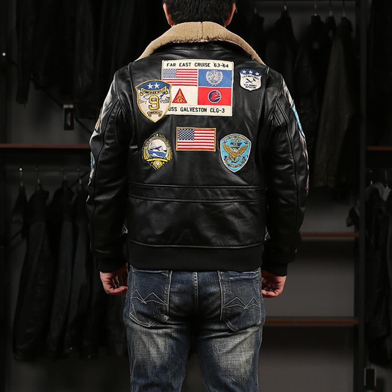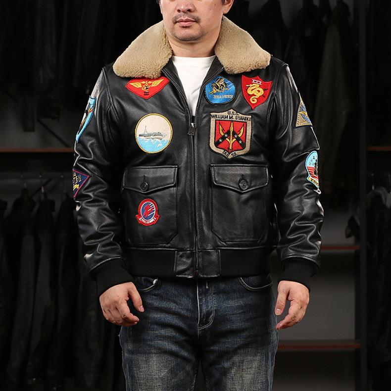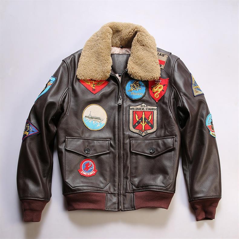 - > Top Gun-Jaqueta piloto de couro genuíno masculina, jaqueta piloto 17 marcas G1, gola de lã, casacos de inverno, nova moda, inverno 2022
