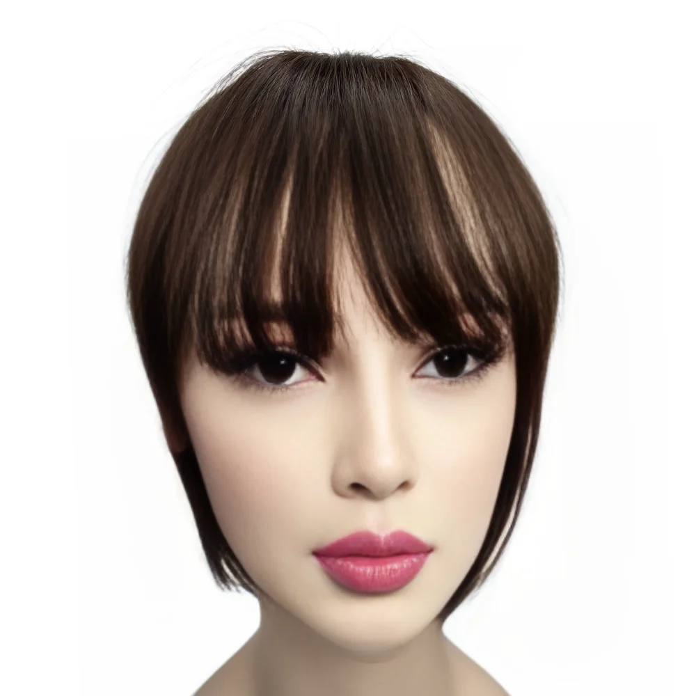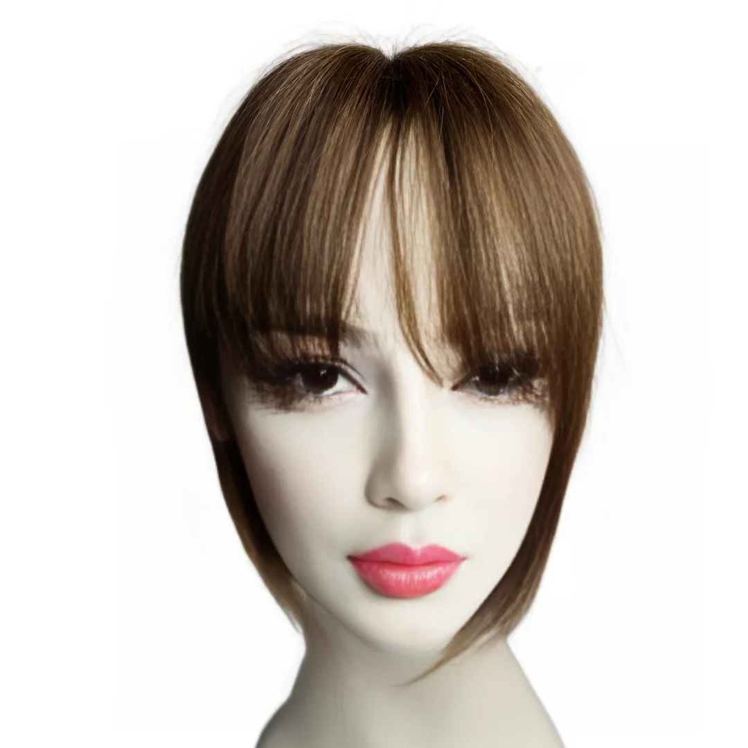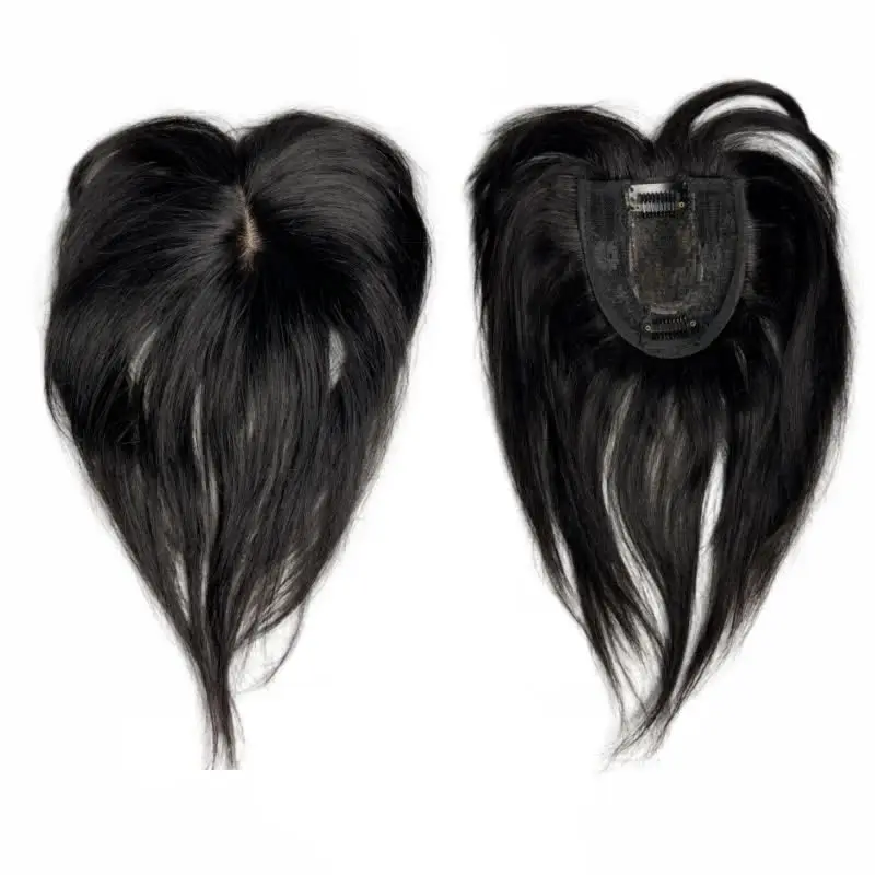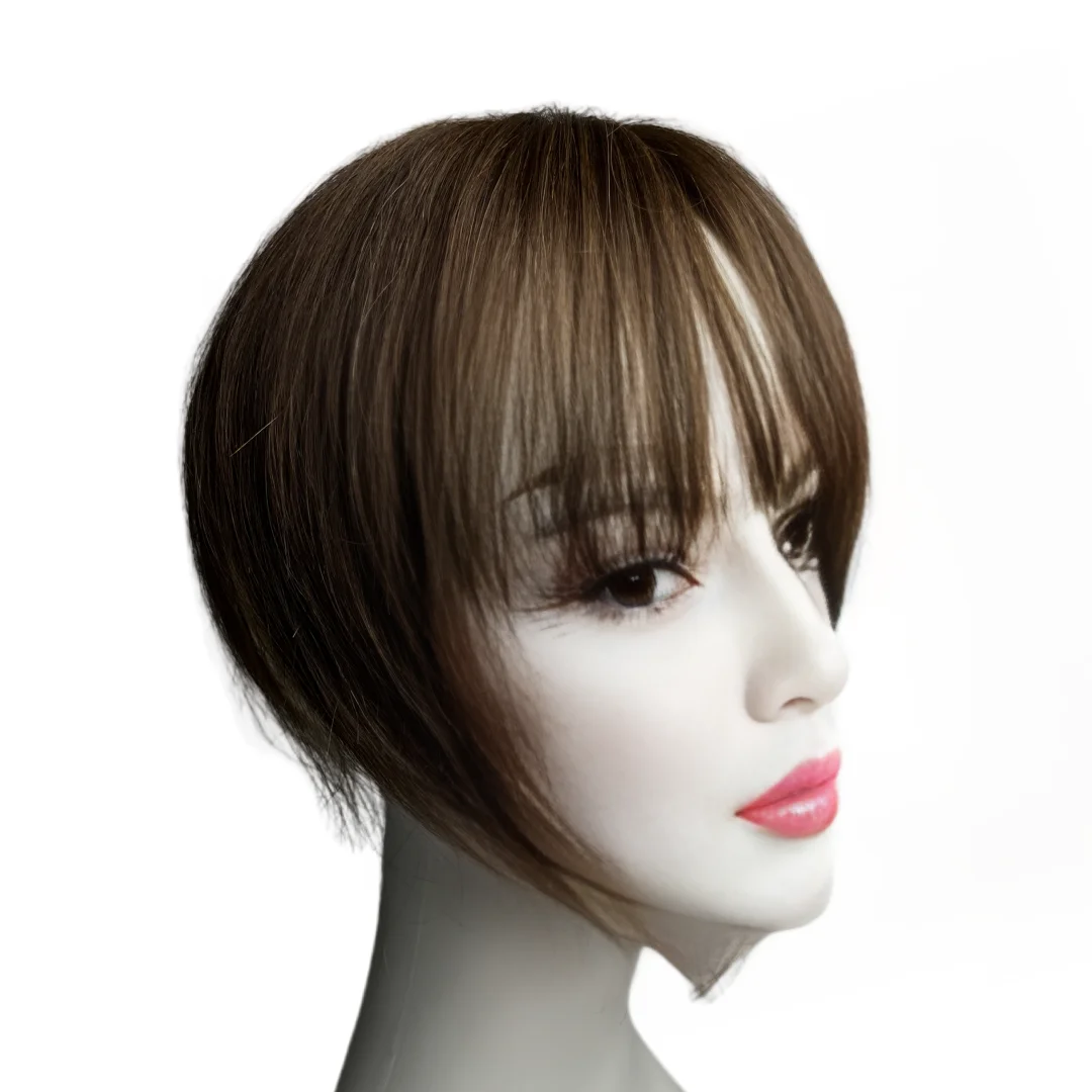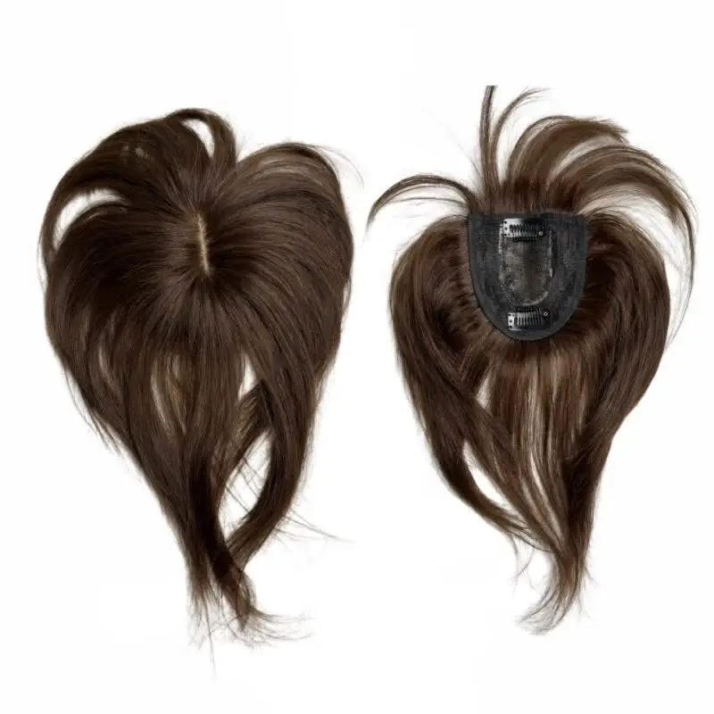 - > Topper de cabelo com grampo de franja 360 ° Toppers de cabelo com cobertura 3D para mulheres com cabelos desbaste Postiços de cabelo liso de 10 polegadas para mulheres