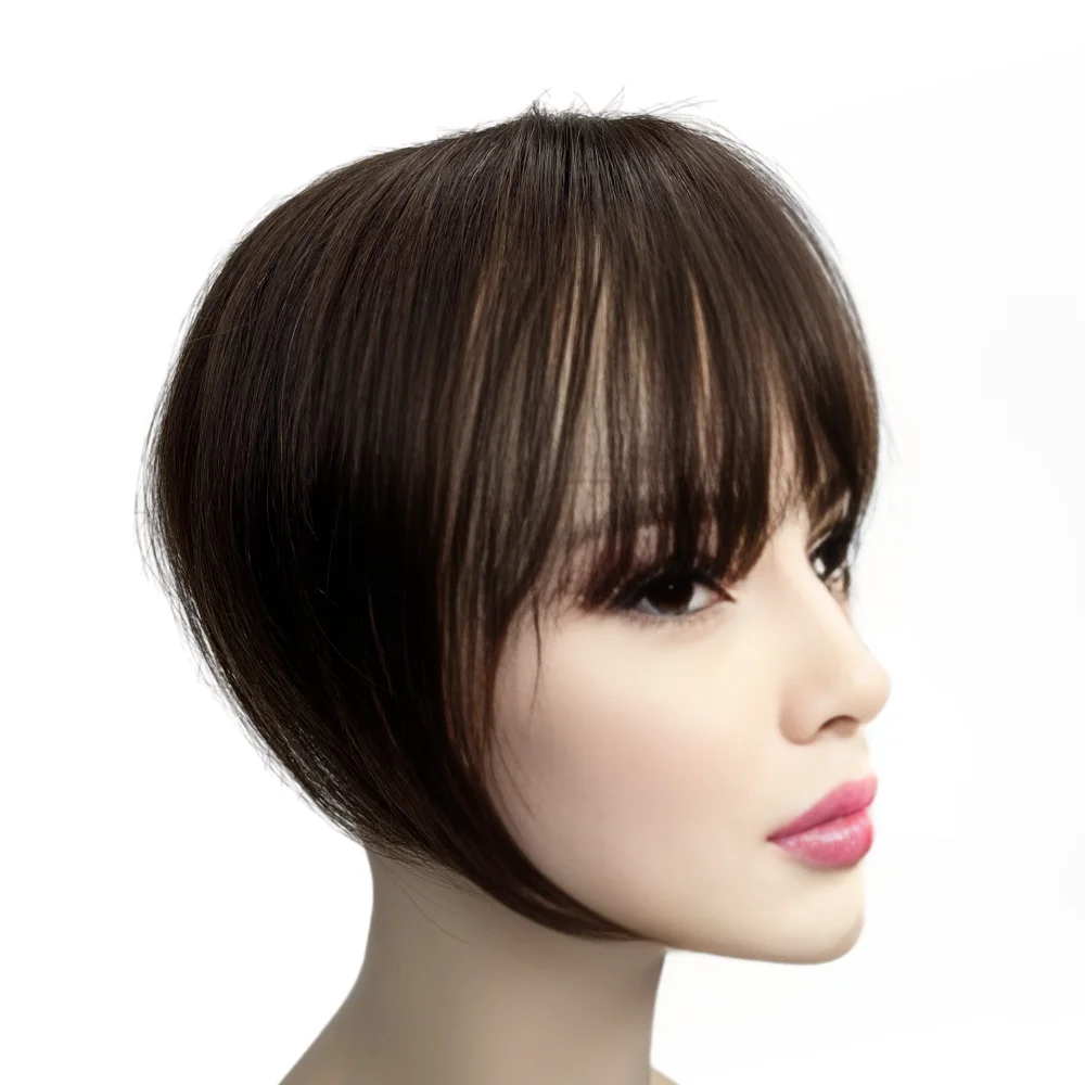 Topper de cabelo com grampo de franja 360 ° Toppers de cabelo com cobertura 3D para mulheres com cabelos desbaste Postiços de cabelo liso de 10 polegadas para mulheres