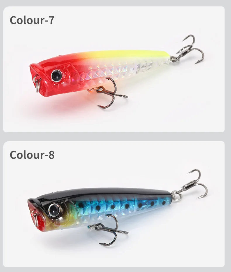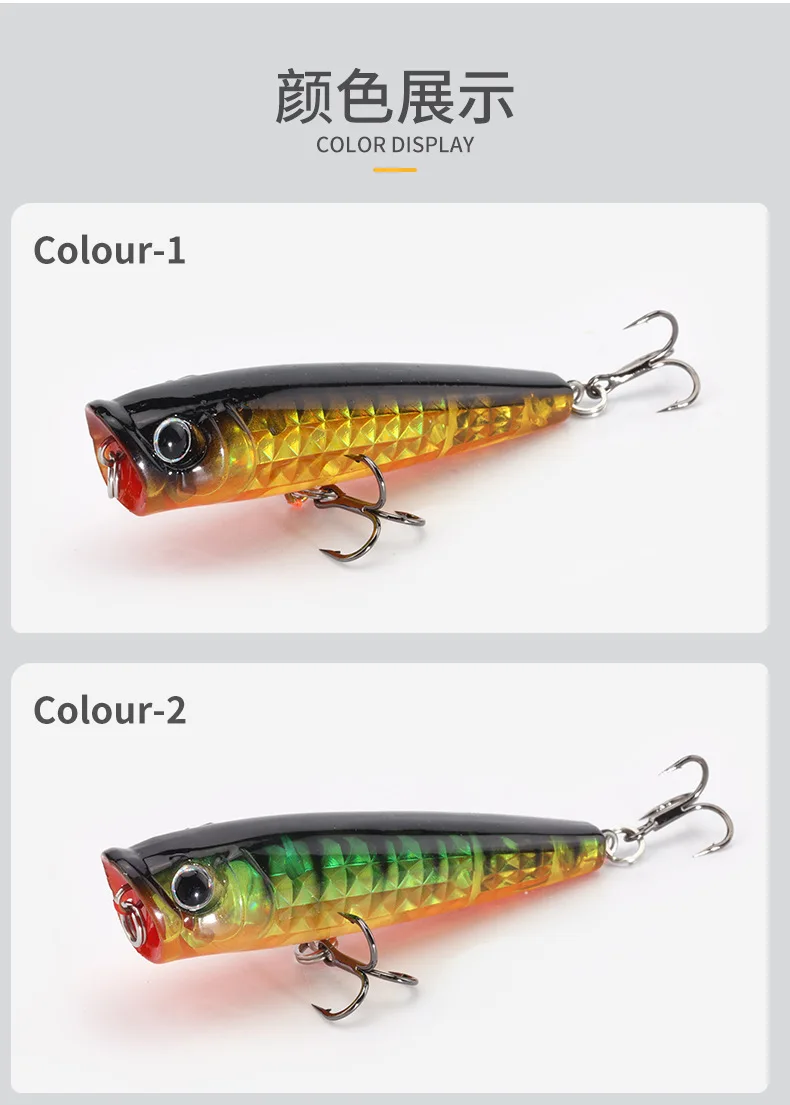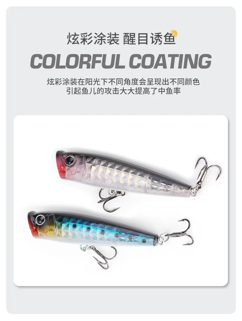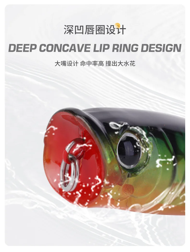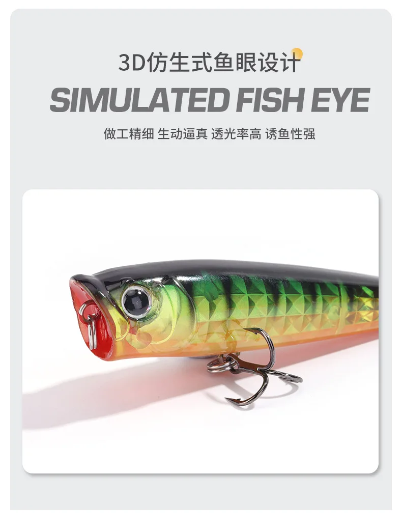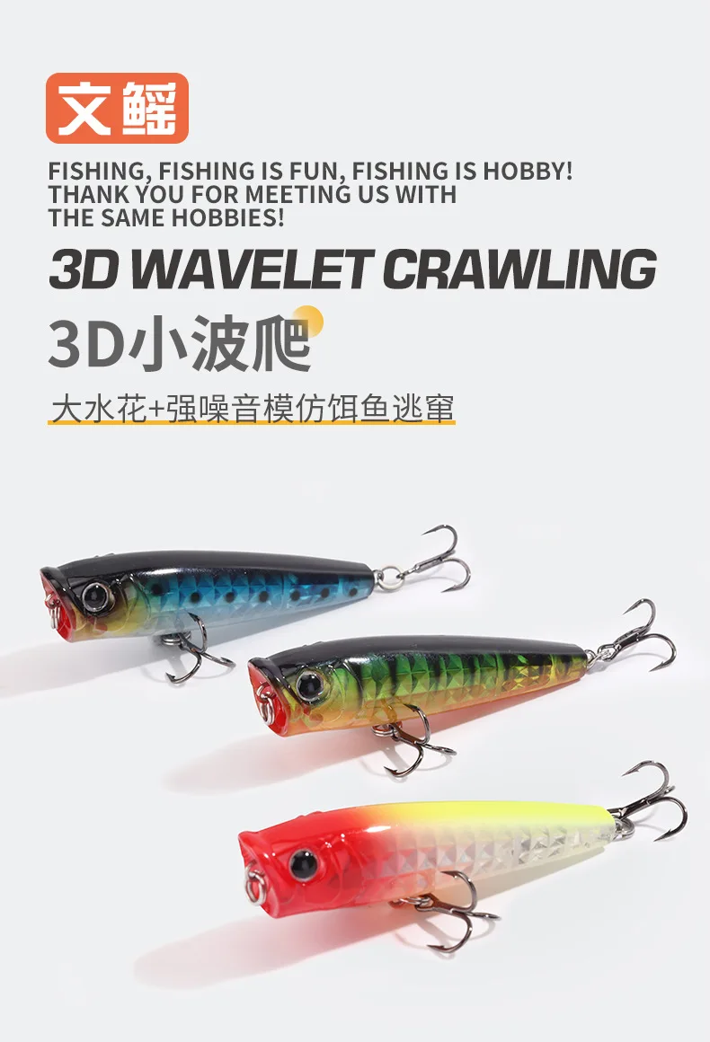 Topwater popper iscas de pesca 3d bateu a onda de água flutuando isca dura boca grande respingo para poleiro baixo carpa predatória