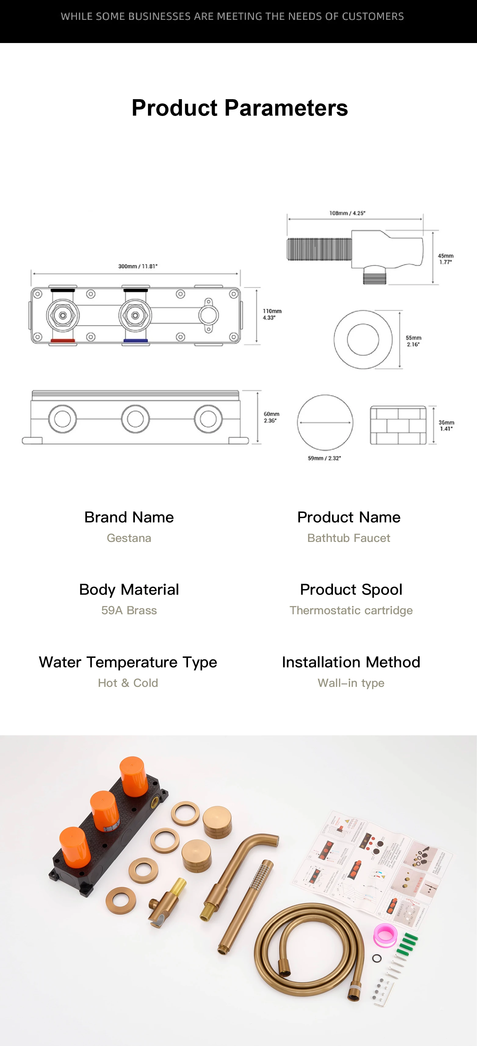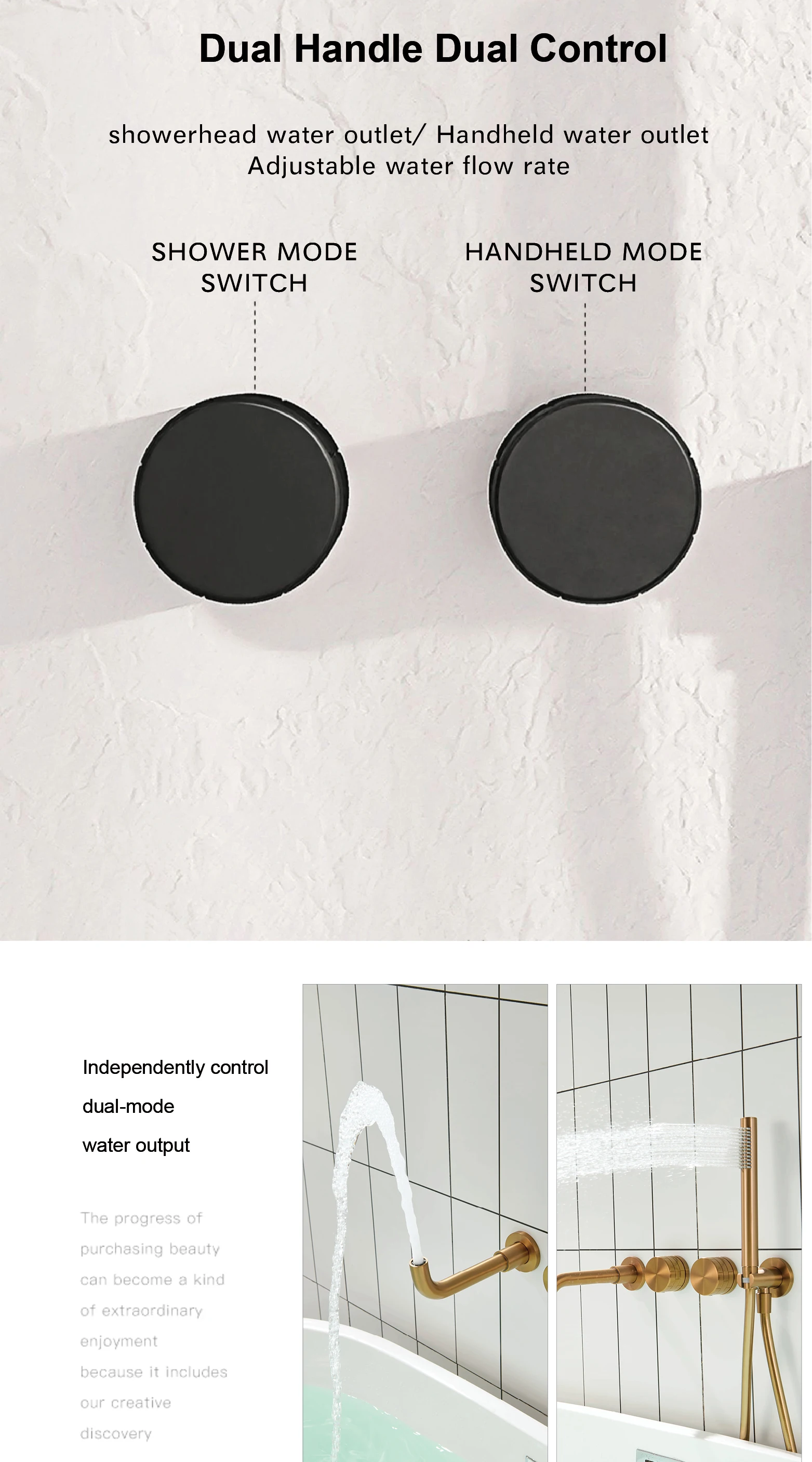 Torneira de banheiro luxuosa de latão escovado dourado com alça dupla embutida, água quente e fria, misturador de banheira com 2 funções