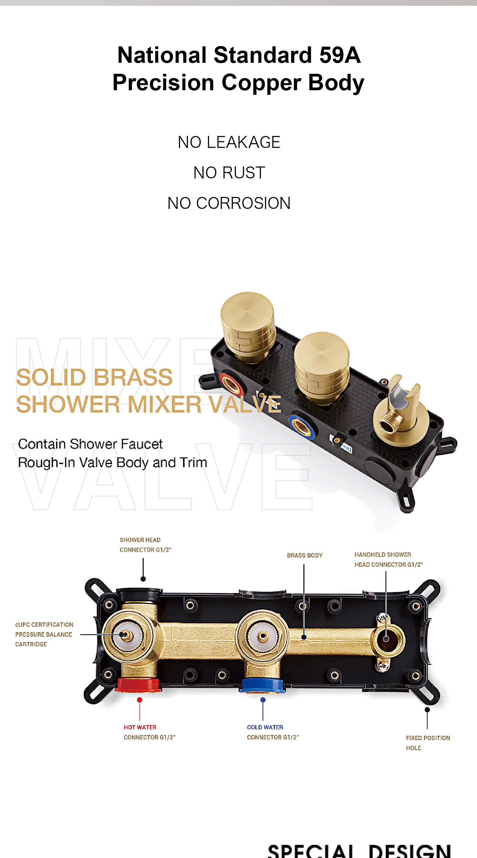 Tipo de controle de água fria/quente: Controle duplo de suporte duplo