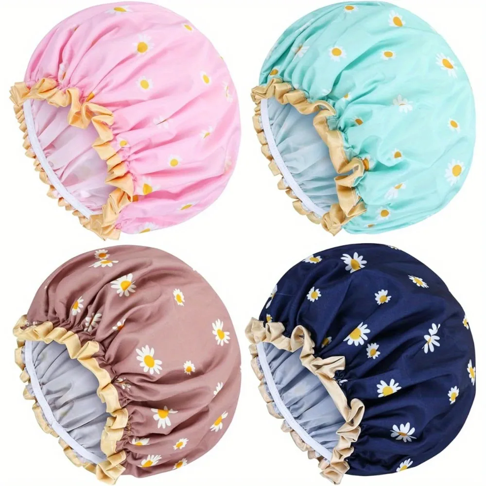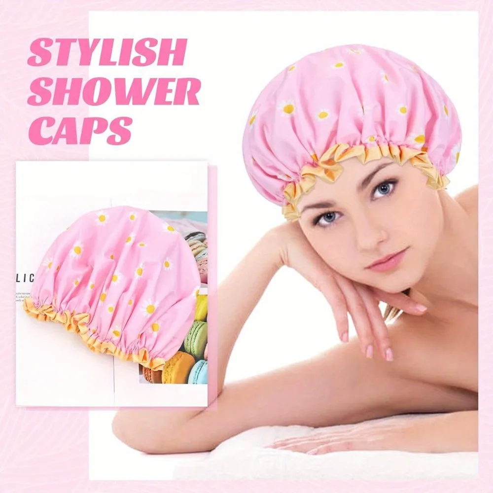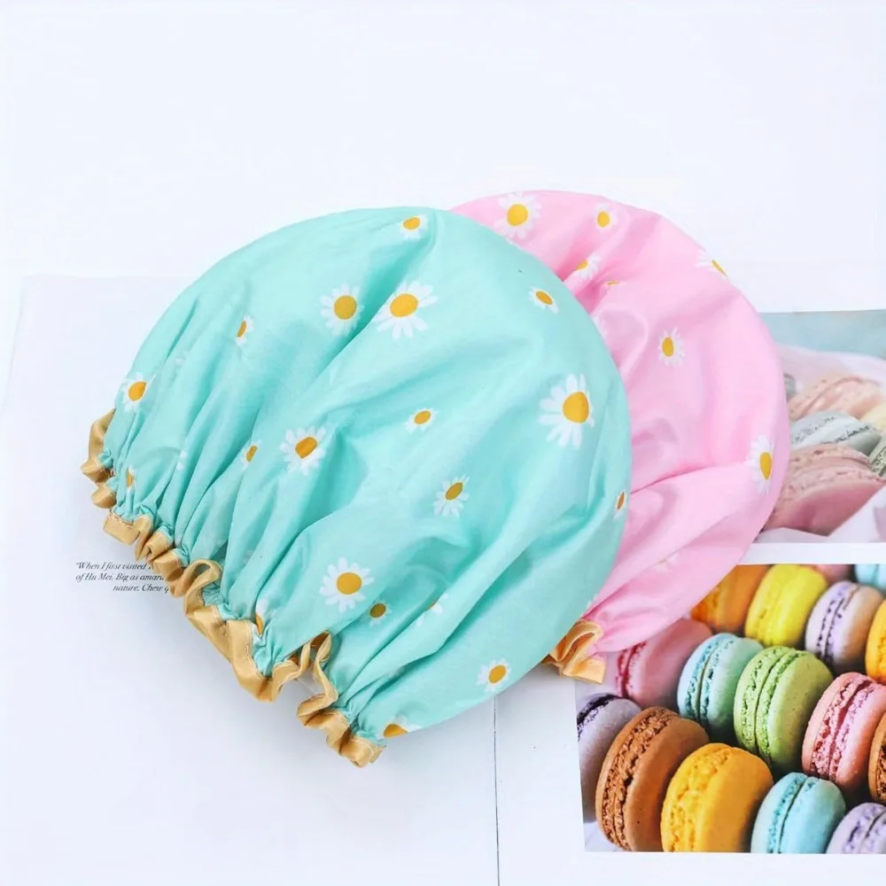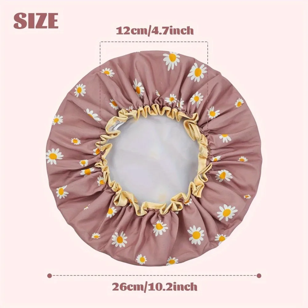 Touca de banho forrada de cetim ajustável à prova d'água para banho com tecido sedoso para viagens femininas