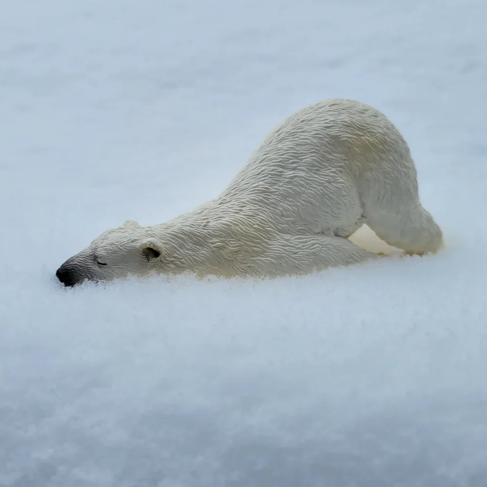 Capturing the silent grace of the Arctic, our Polar Bear figurine lies in wait, fur detailed to perfection. Can you tell if it's real or art?