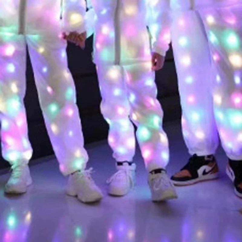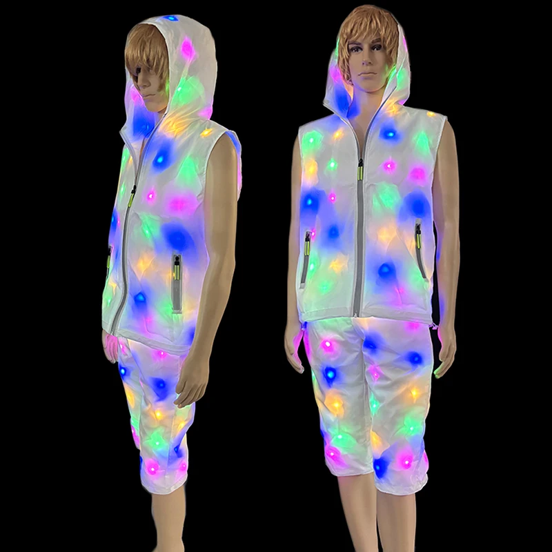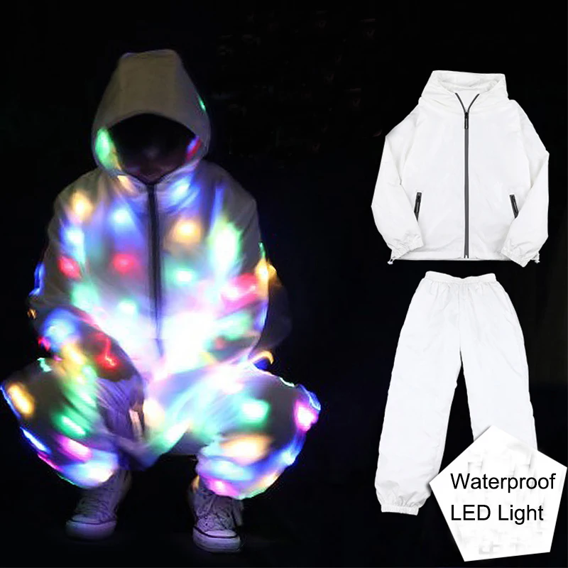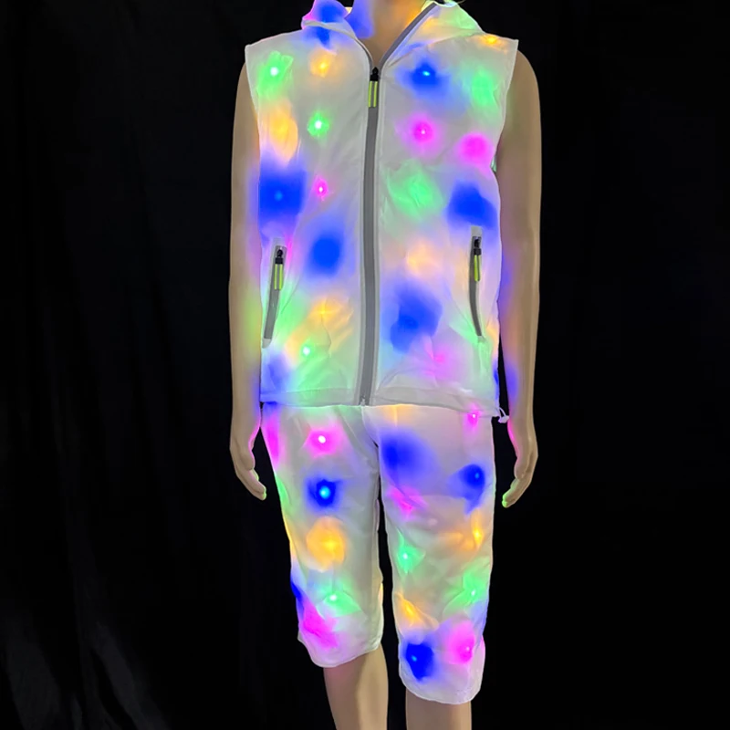 Traje de dança com iluminação eletrônica led, colete à prova d'água, calças, adereços para corrida noturna, flash luminoso, performance de palco, roupas led