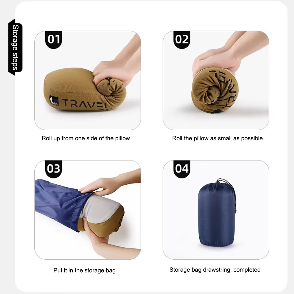 【Fácil de transportar】Medindo 43x25x12cm.Peso: 530g.Equipado com bolsa de armazenamento, o tamanho após armazenamento é 22,5x13x13cm.Nosso travesseiro de acampamento é leve e portátil, vem em uma prática bolsa de viagem, você pode comprimir o travesseiro para economizar espaço e para facilitar a viagem ou acampamento