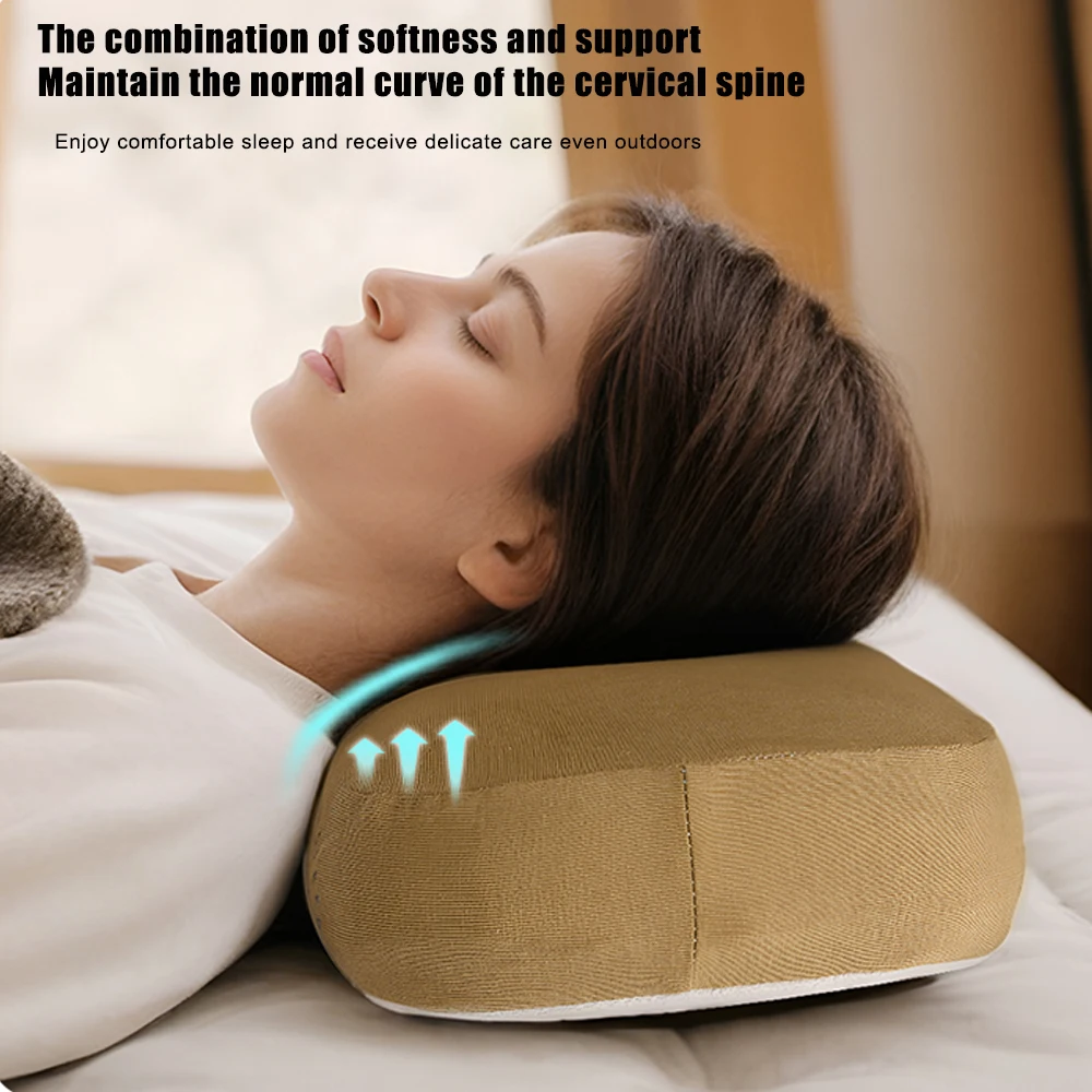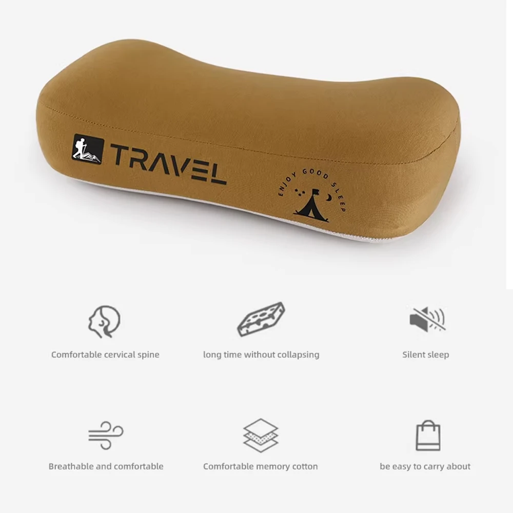 Travesseiro de espuma de memória ultraleve para acampamento, travesseiro de mochila de viagem com capa removível para suporte lombar no pescoço, caminhadas ao ar livre