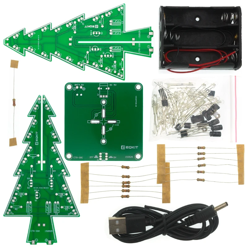 Tridimensional 3D Árvore de Natal LED DIY Kit Vermelho/Verde/Amarelo LED Flash Circuit Kit Eletrônico Divertido Suite
