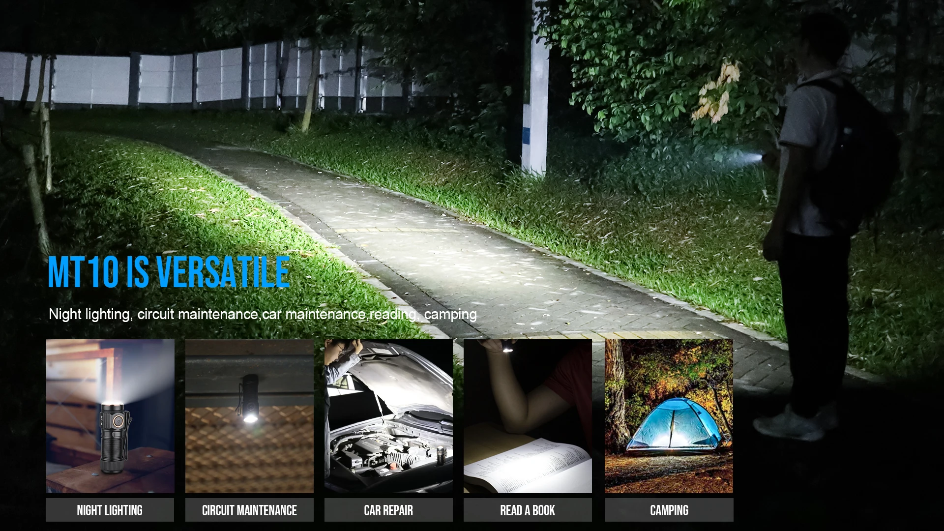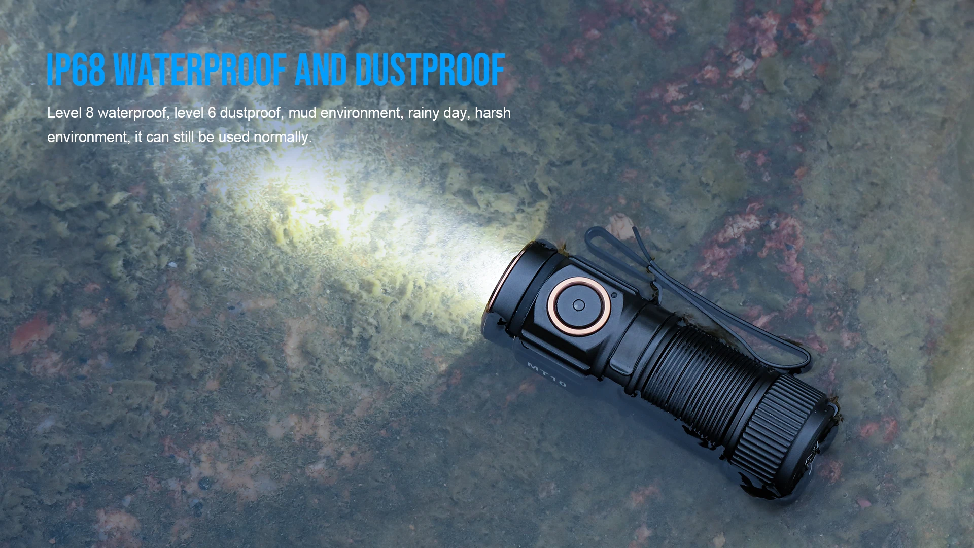 MT10 double-click switch can lock the flashlight switch to preventaccidental touches and the flashlight runs out of power.