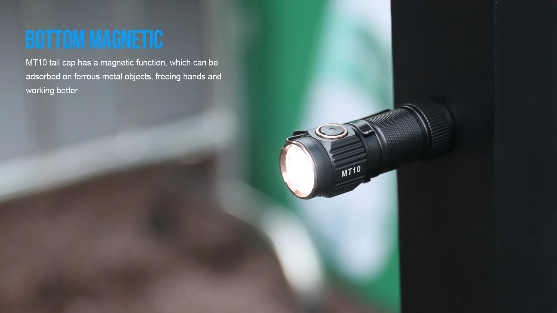 MT10 tail cap has a magnetic function, which can beadsorbed on ferrous metal objects, freeing hands andworking better