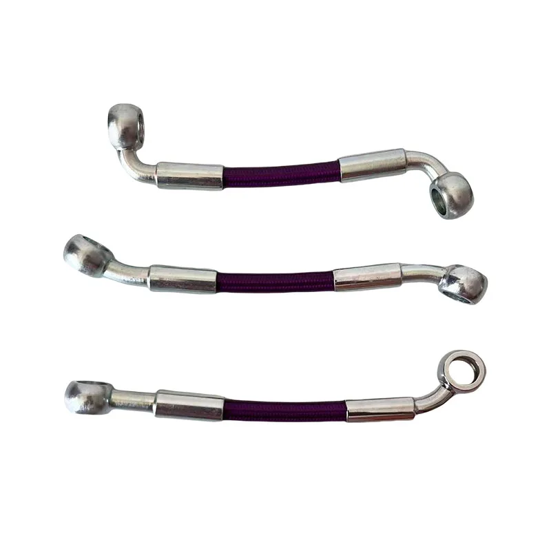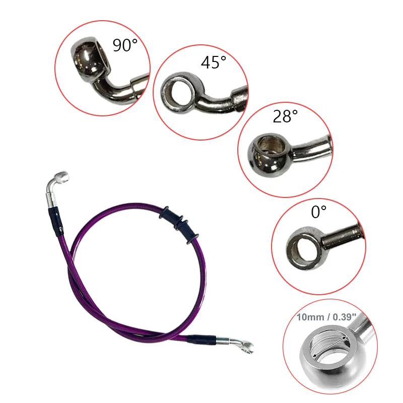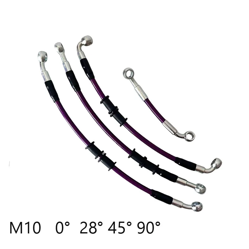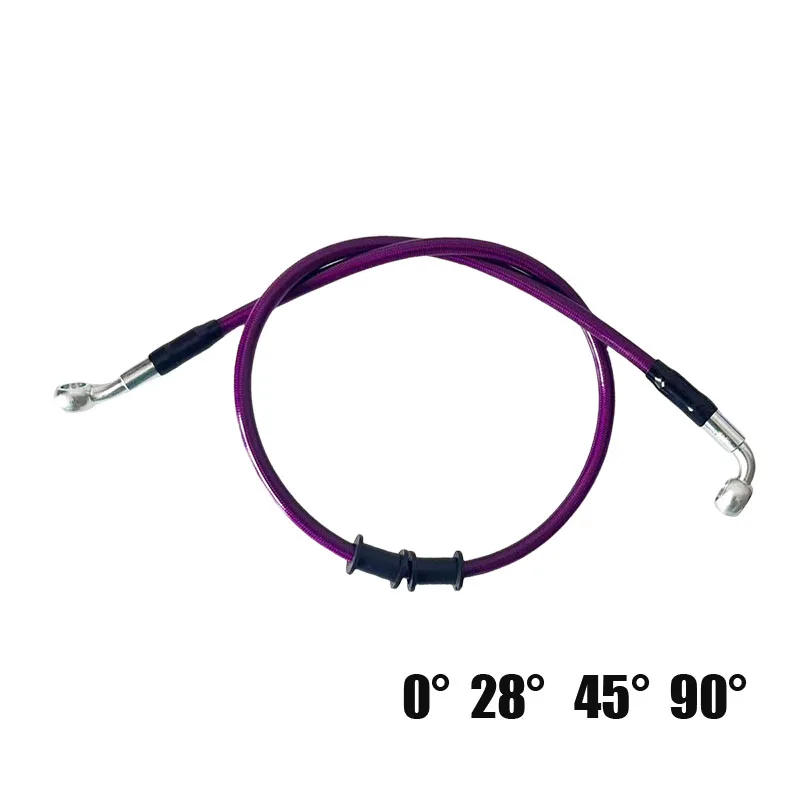 Tubo de óleo de embreagem hidráulica para motocicleta, reforçado, trançado, roxo, mangueiras de freio, cabo de corrida, 10mm, banjo 0 ° 28 ° 45 ° 90 ° AN3