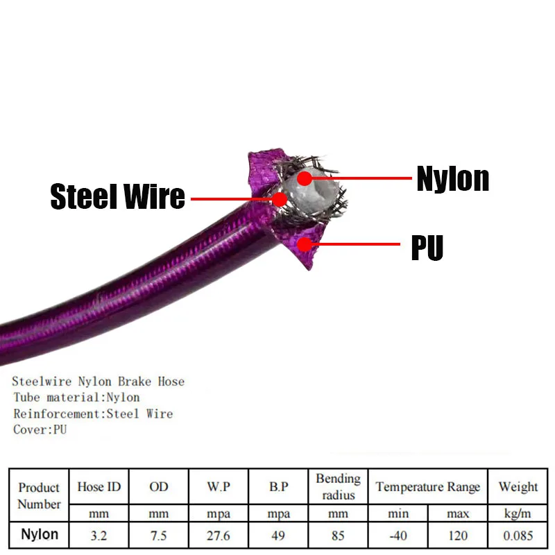 Seguro e confiável: a camada trançada de aço de alta resistência aumenta significativamente a resistência à pressão, garantindo um desempenho de frenagem estável e confiável, protegendo sua segurança ao dirigir.