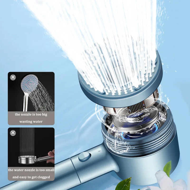 Turbina de cinco velocidades grande saída de água filtro impulsionador cabeça de chuveiro casa banheiro conjunto de cabeça de chuveiro
