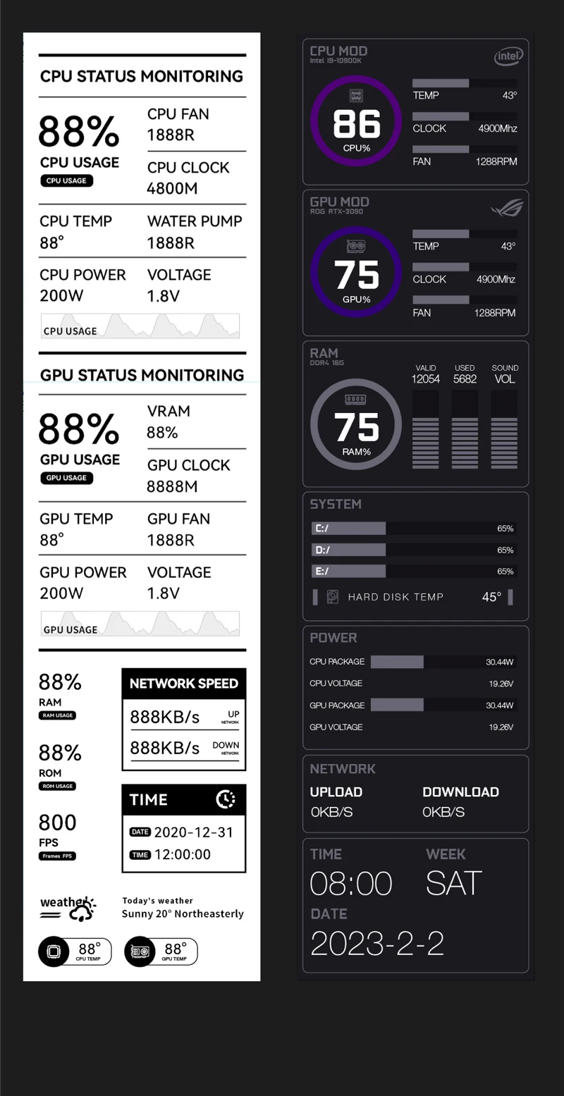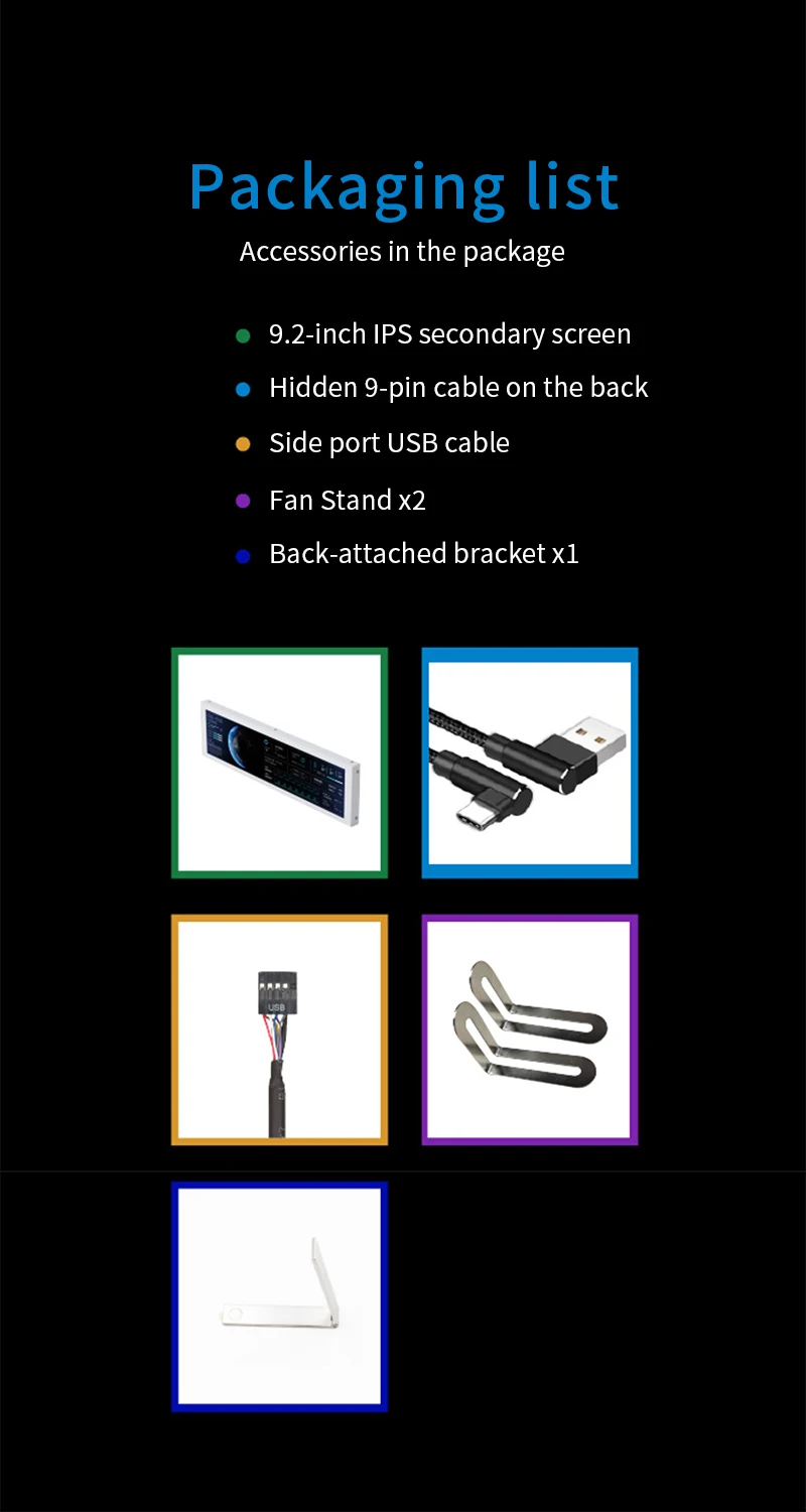 - > Turzx 9.2 Polegada usb tela secundária 1920*462 ips tela inteligente lcd cpu ram hdd monitor meteorológico display sem aida64