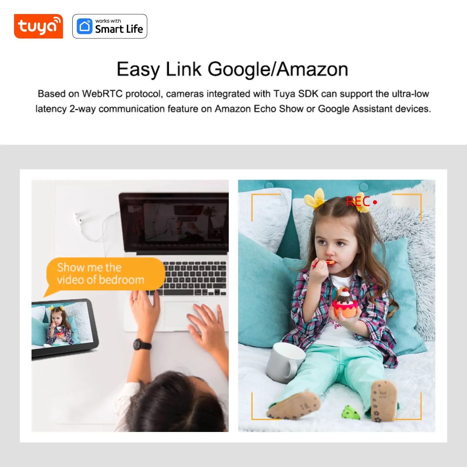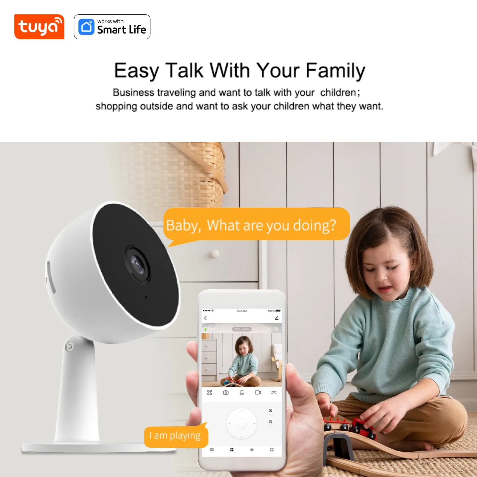 Câmeras de segurança doméstica inteligentes Tuya - Câmera de vigilância WiFi HD de 3MP e 2MP HD com aplicativo de telefone Áudio bidirecional, alerta de aplicativo em tempo real, detecção de corpo humano, para bebê/animal de estimação/cachorro/babá, sirene inteligente funciona com Tuya e Smart Life APP