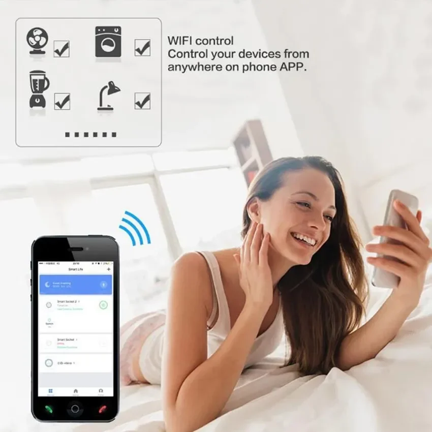 - Fácil instalação: Uma vez conectado ao mesmo WiFi pela primeira vez, todo o trabalho de configuração é concluído.Você pode controlar facilmente seus eletrônicos, esteja em WiFi sem fio ou em rede GPRS quando estiver longe de sua casa.Economize dinheiro dirigindo a casa de acordo com sua programação