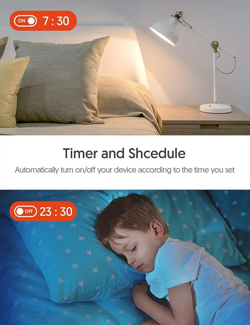 - Ligue seu eletrodoméstico, como ventilador, umidificador, dispensador de água, luzes, forno de micro-ondas e muito mais, na hora exata que você definiu, nunca desperdiçando sua energia com o recurso de contagem regressiva do dispositivo.