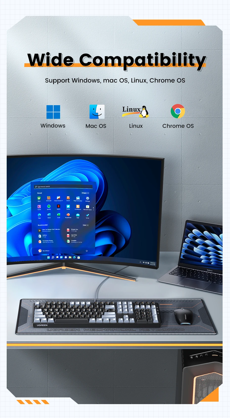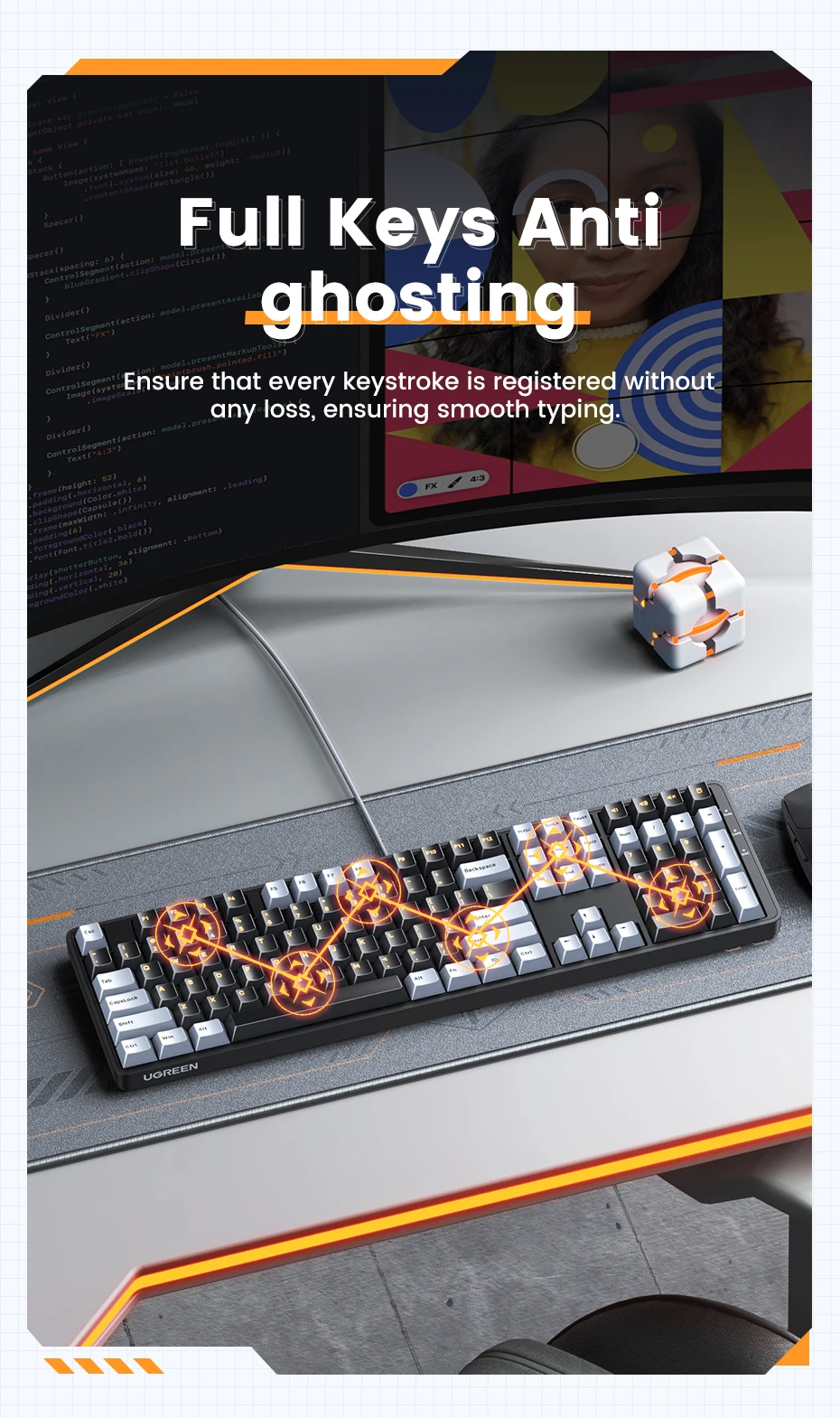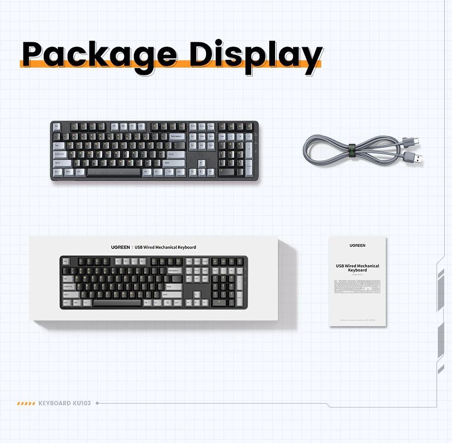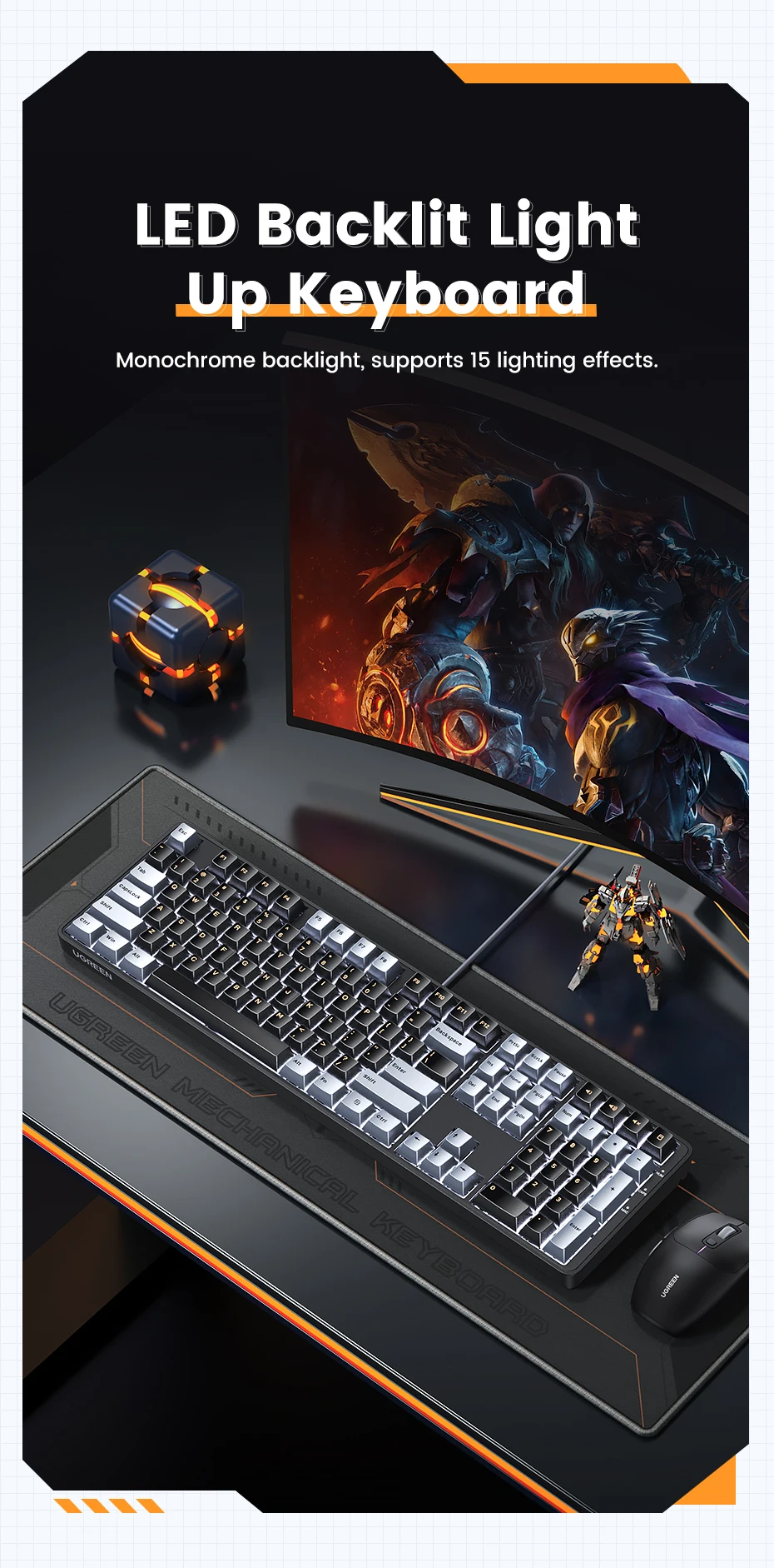 - > UGREEN-108 PBT Keycaps Teclado Mecânico com Fio, Interruptor Vermelho, Russo, Coreano, EN, Área de Trabalho, Laptop, Windows, Mac, OS Gaming