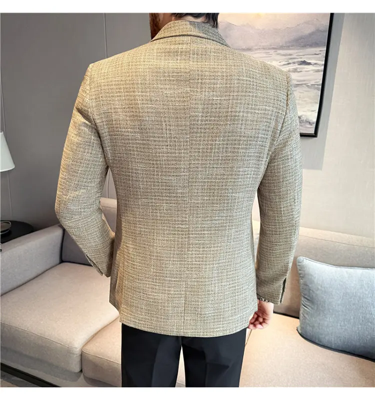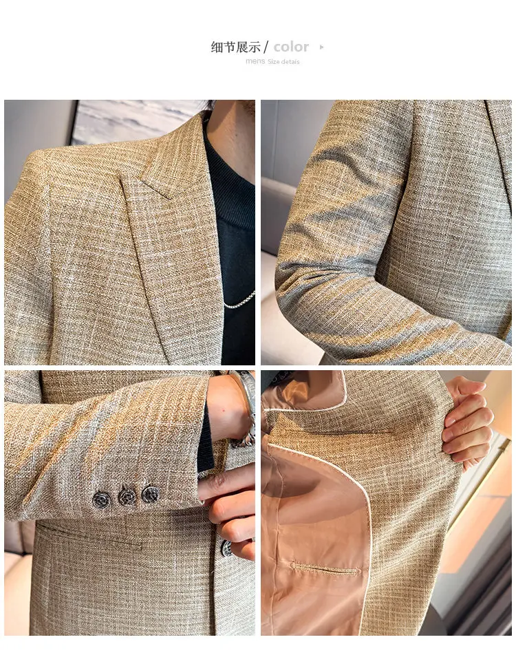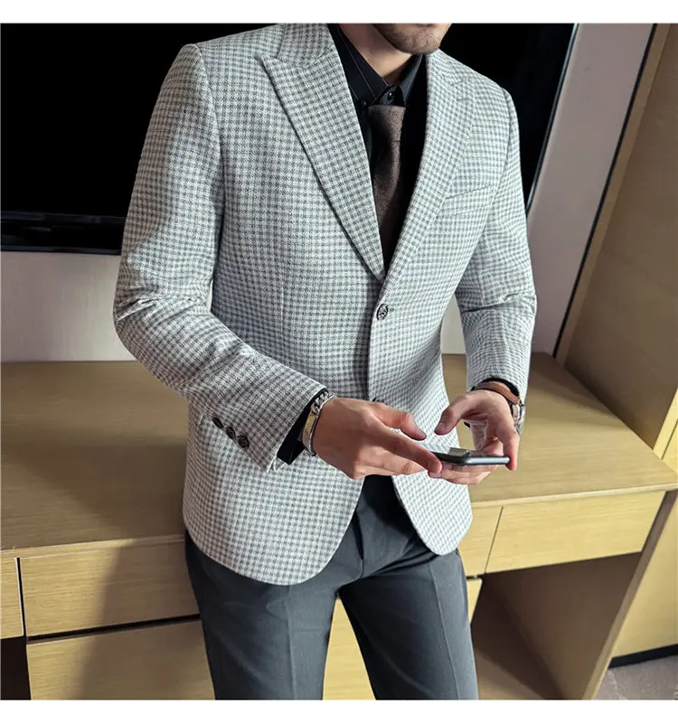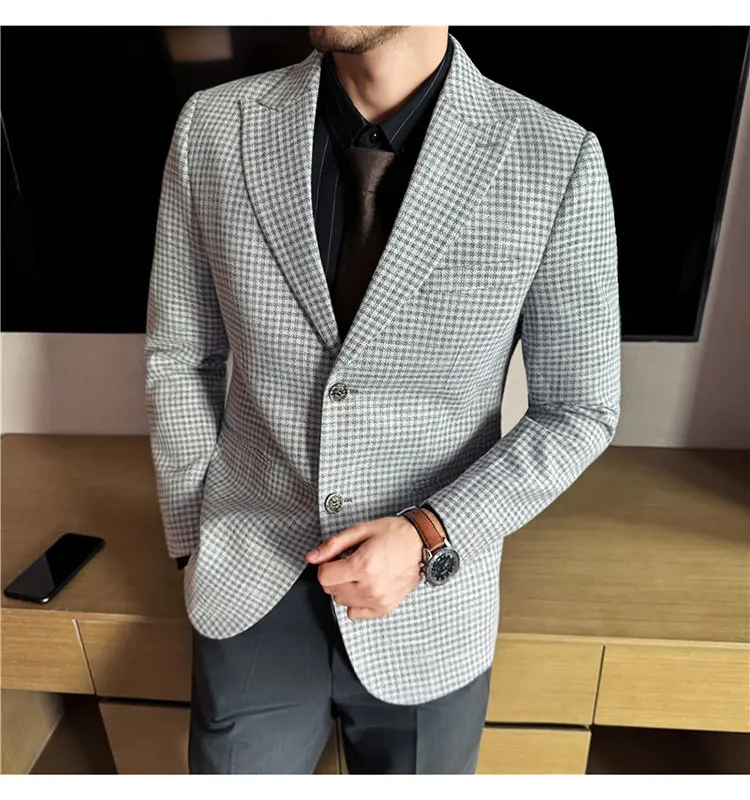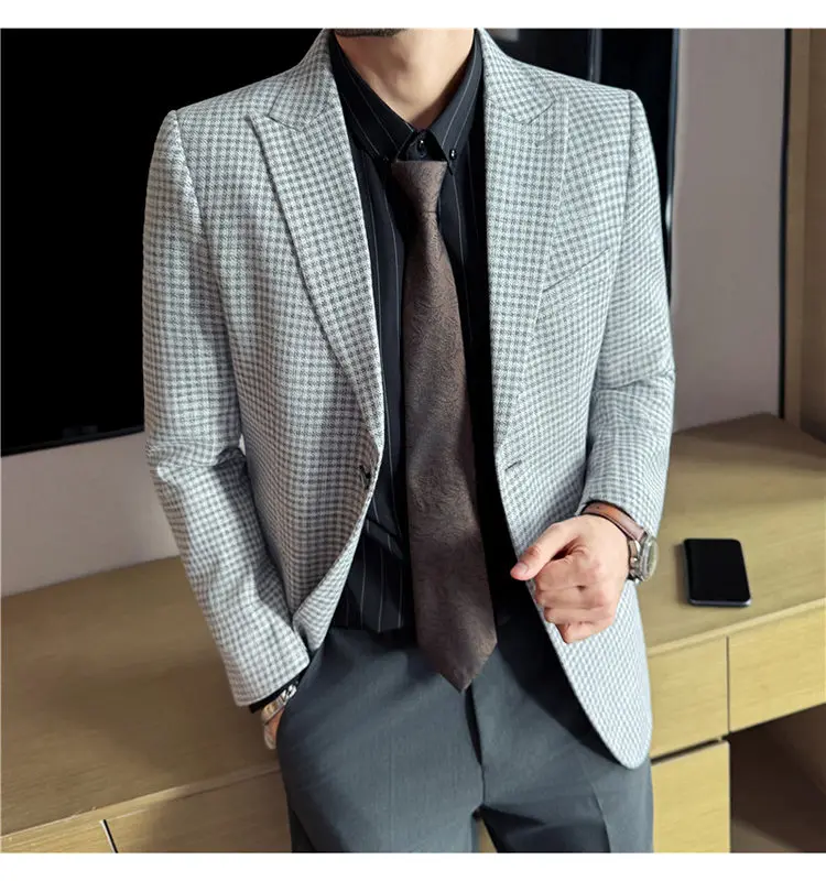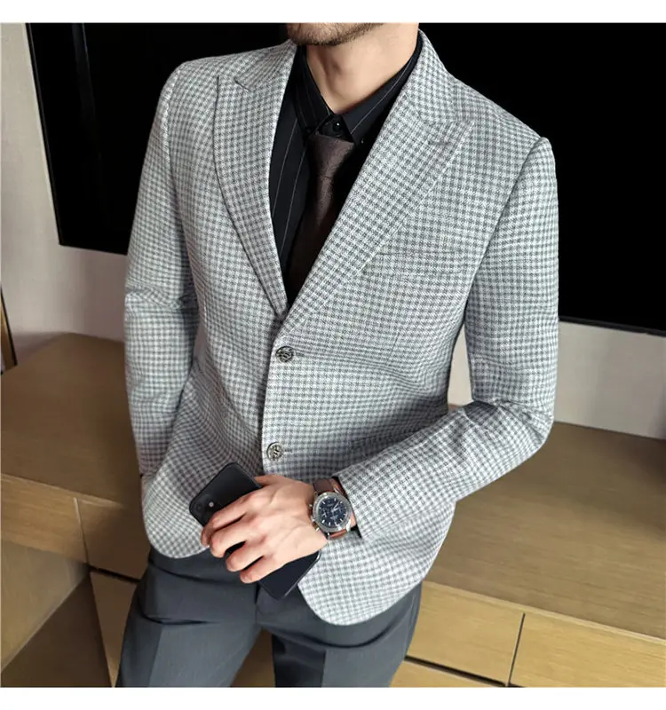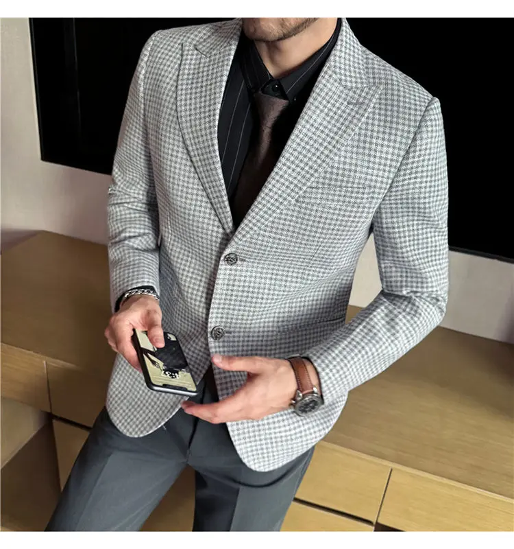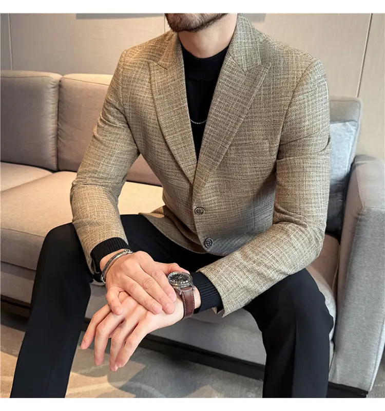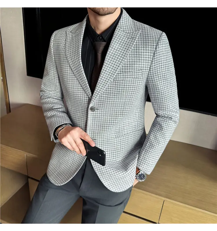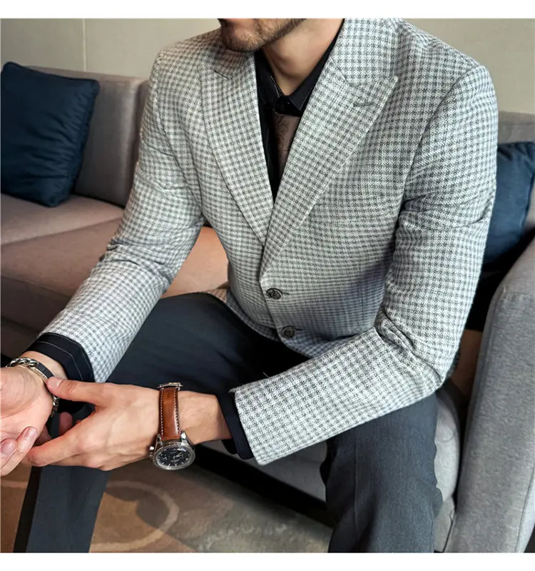 - > Uma jaqueta de terno xadrez grossa no estilo de moedas antigas feita de lã, um terno xadrez de alta qualidade na cor café