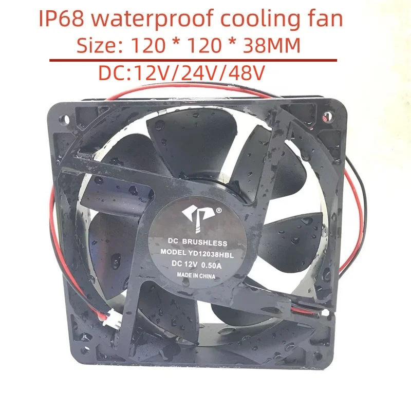 - > Umidificador ultrassônico industrial IP68 ventilador à prova d'água spray freezer ventilador de resfriamento 12CM 120 * 120 * 38mm 12V / 24V / 48V