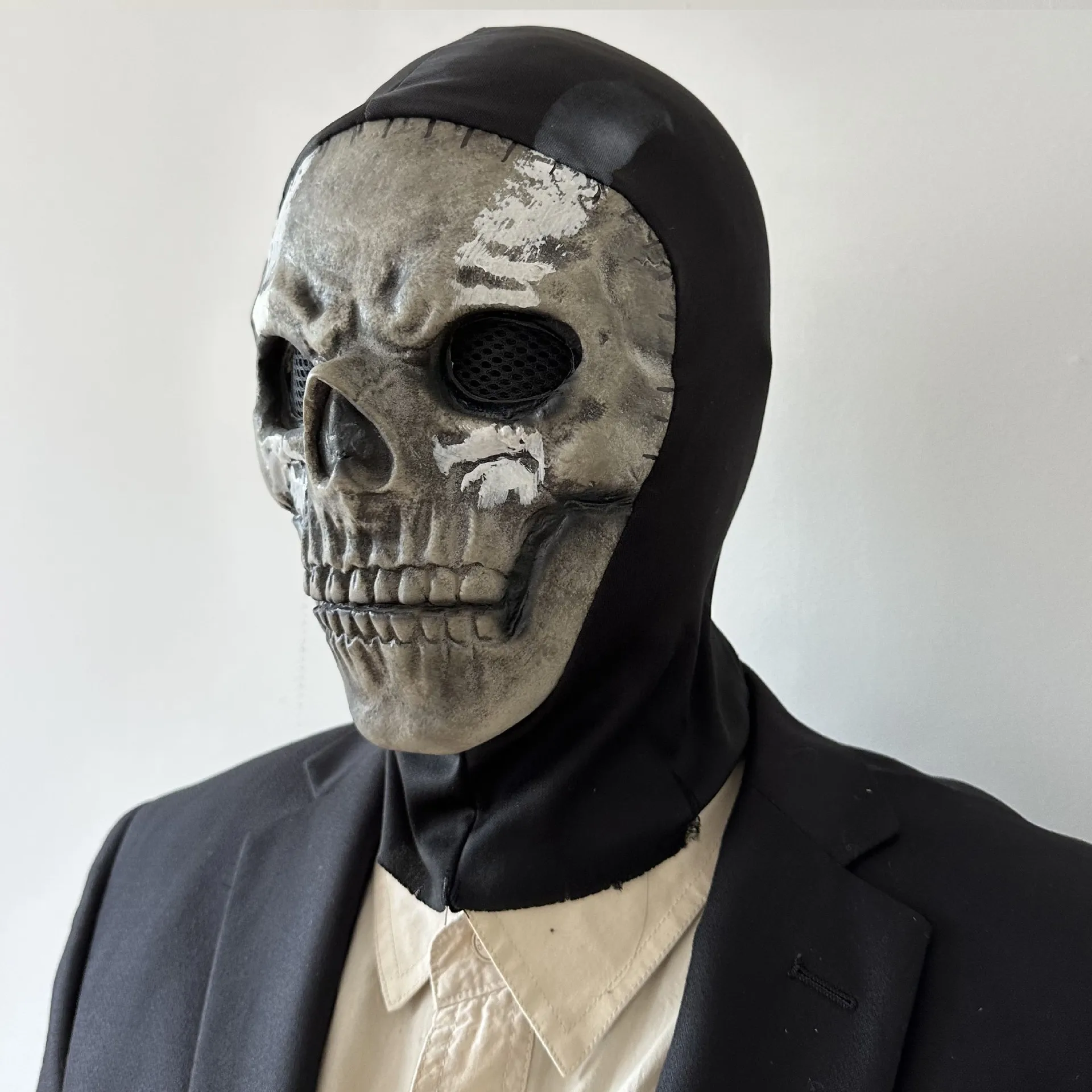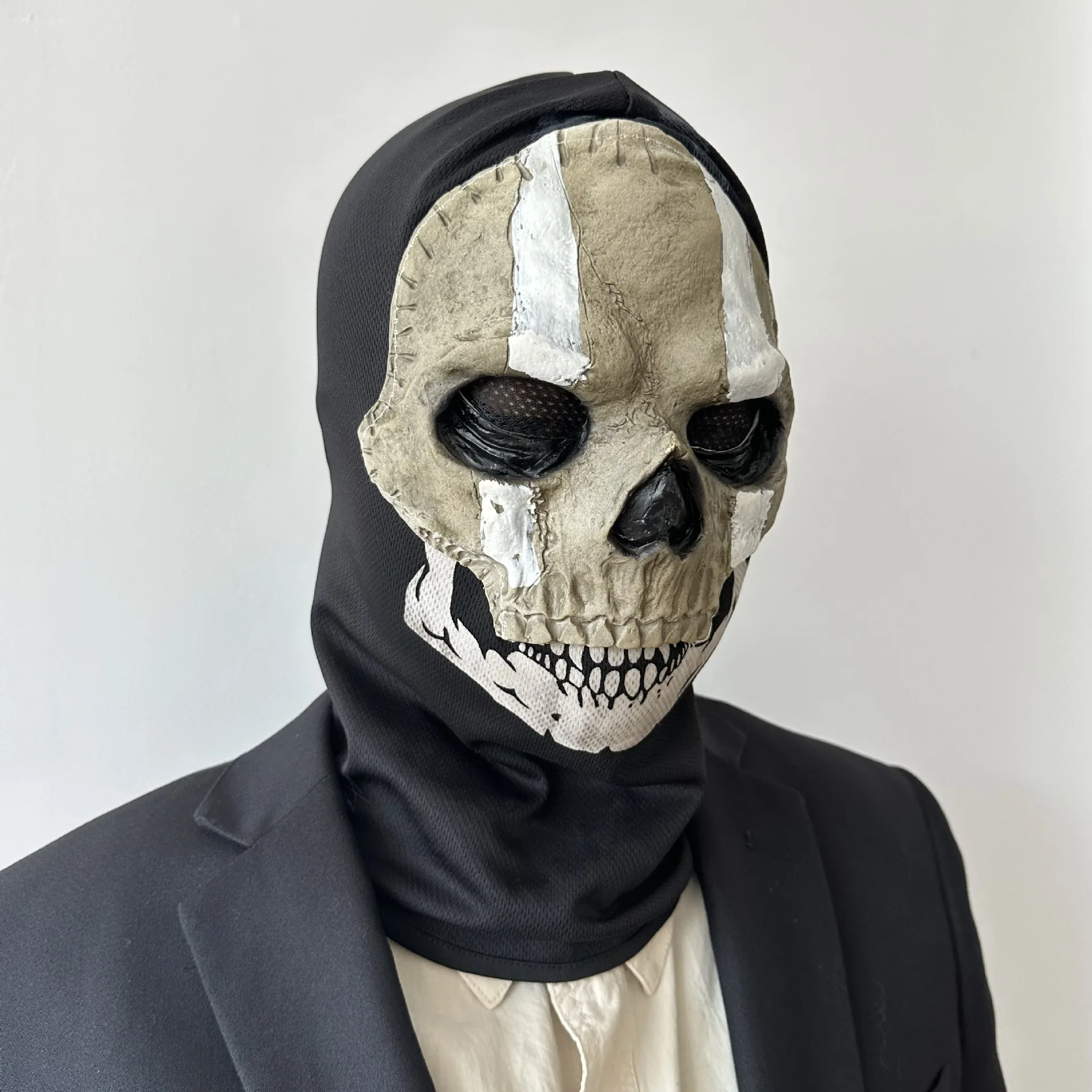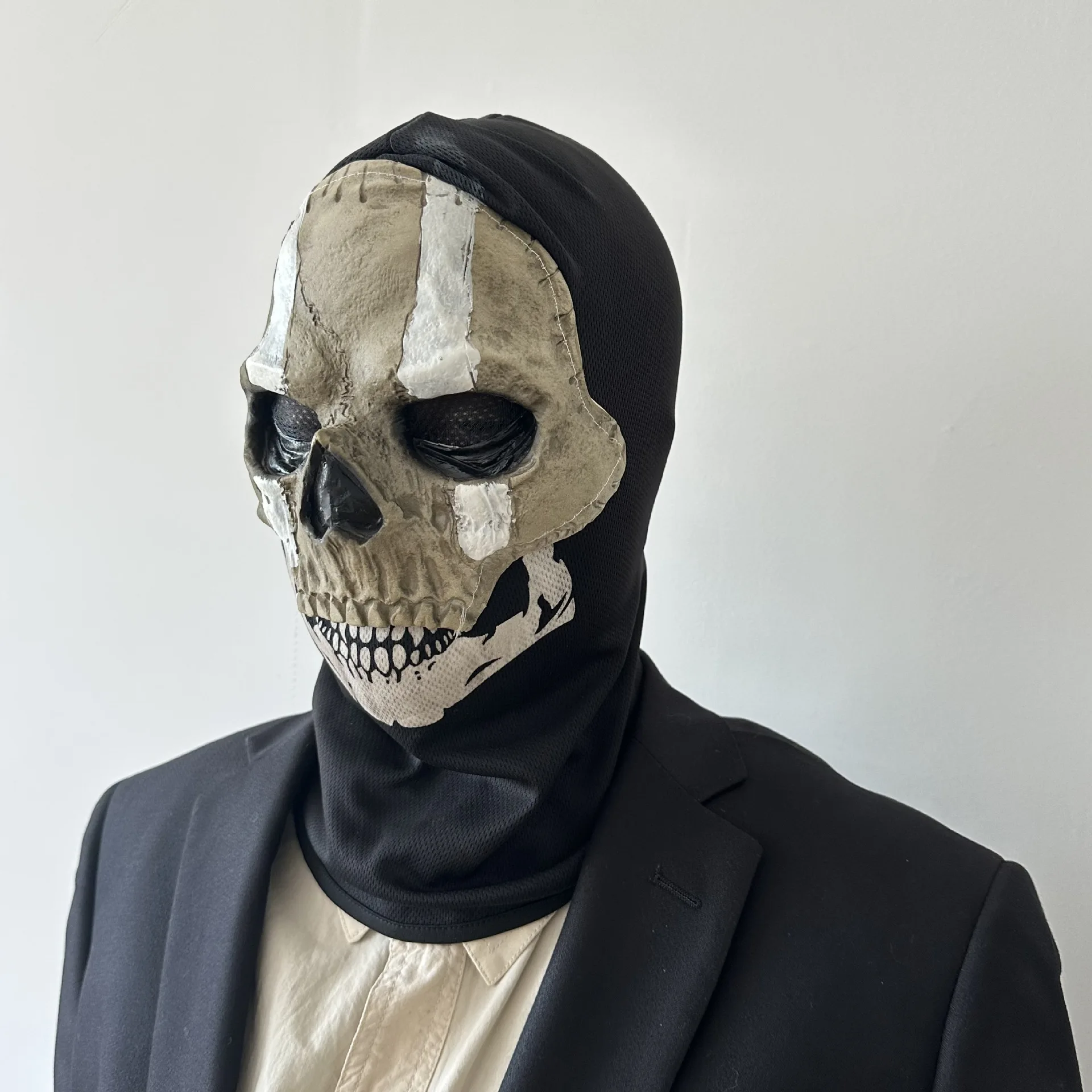 Unissex chamada de dever fantasma crânio máscara rosto cheio esqueleto máscara assustadora esporte ao ar livre jogo guerra halloween cosplay látex