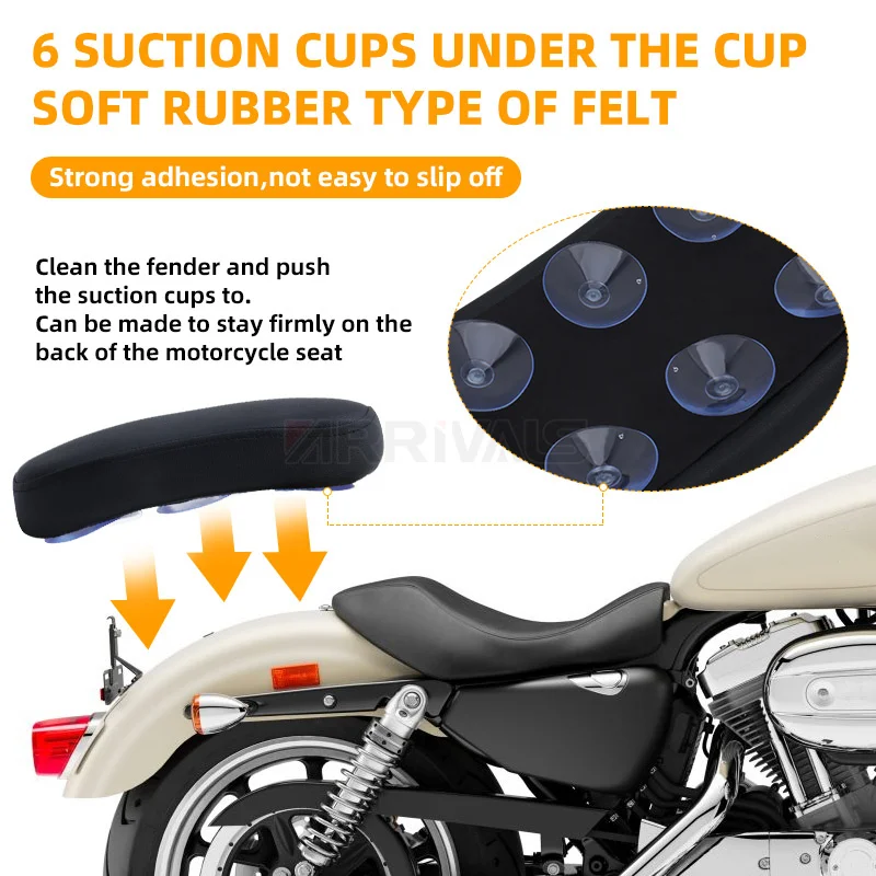 - > Universal nova motocicleta preto ventosa traseiro pillion assento almofada do passageiro para harley 883 1200 48 choppers bobber