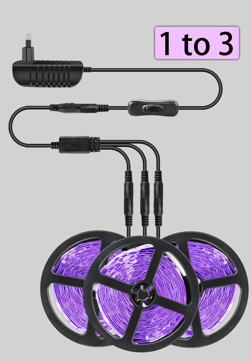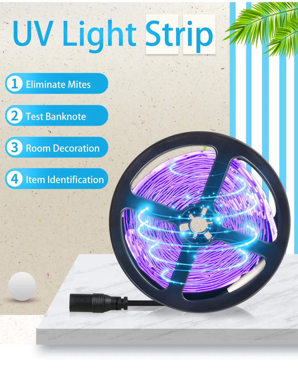 Uv dc 12v 5m tira de luz led ultravioleta 385-400nm luz preta 2835 smd lâmpada uv fita led flexível para festa de fluorescência brilhante