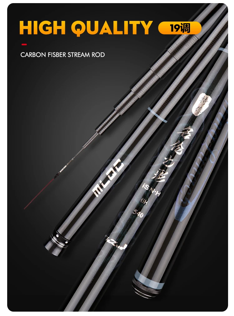 Vara de mão de alto carbono, 19 tons, 6h, super leve, dura, fluxo, água doce, vara de pesca telescópica, 3m4m5m6m7m8m9m10m