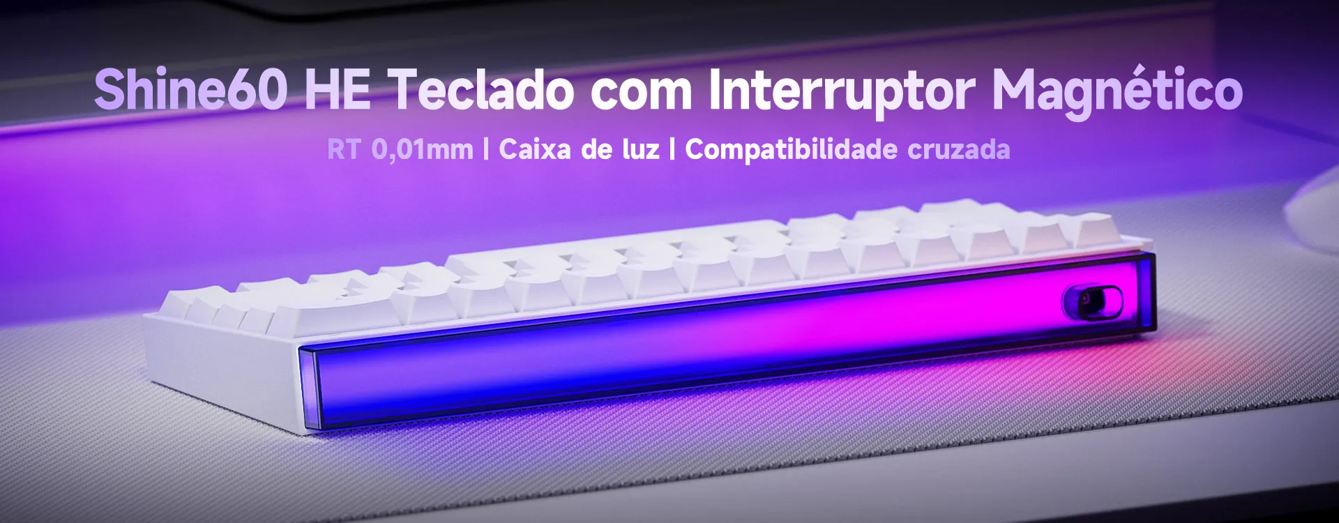 - > Veekos Teclado Shine60 HE 60% AGRB com Lightbox RT0.01mm Interruptor Magnético 8K Tipo-C Teclado Mecânico E-Sports