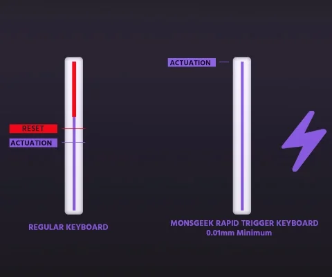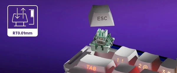 RT 0,01 mm Obtenha gatilho rápido ultra-preciso de 0,01 mm e atuação ajustável distância em passo de 0,01 mm.Isso permite que os usuários ajustem sua digitação ou experiência de jogo, garantindo atuação ideal para tempos de resposta mais rápidos com precisão aprimorada, ideal para jogos competitivos. |
