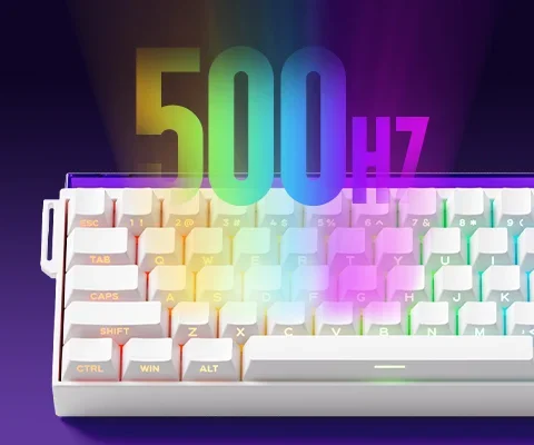 ARGB com taxa de atualização de 500 Hz O teclado magnético Shine60 possui ARGB (RGB endereçável) com LEDs controlados individualmente para iluminação suave e sem cintilação.Com Alpha integração de canais e uma taxa de atualização de 500 Hz, oferece uma dinâmica mais rica efeitos e reduz a fadiga visual - perfeito para jogos e construções estéticas. |